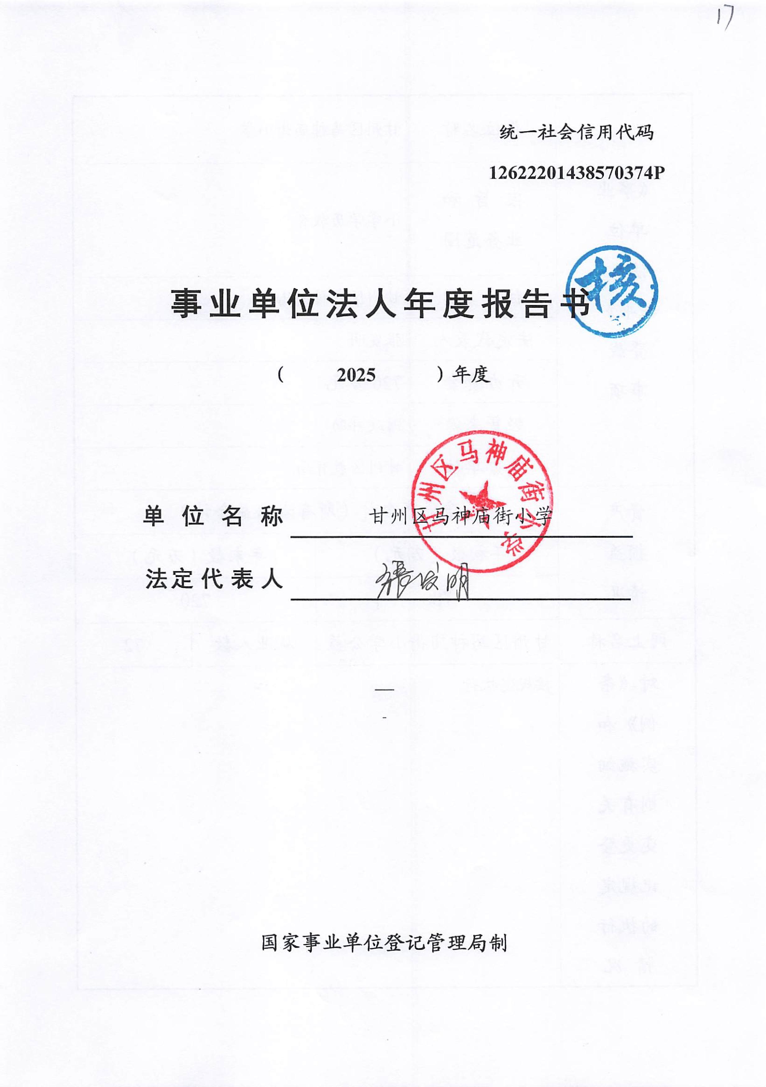 甘州区马神庙街小学2025年度事业单位法人年度报告书