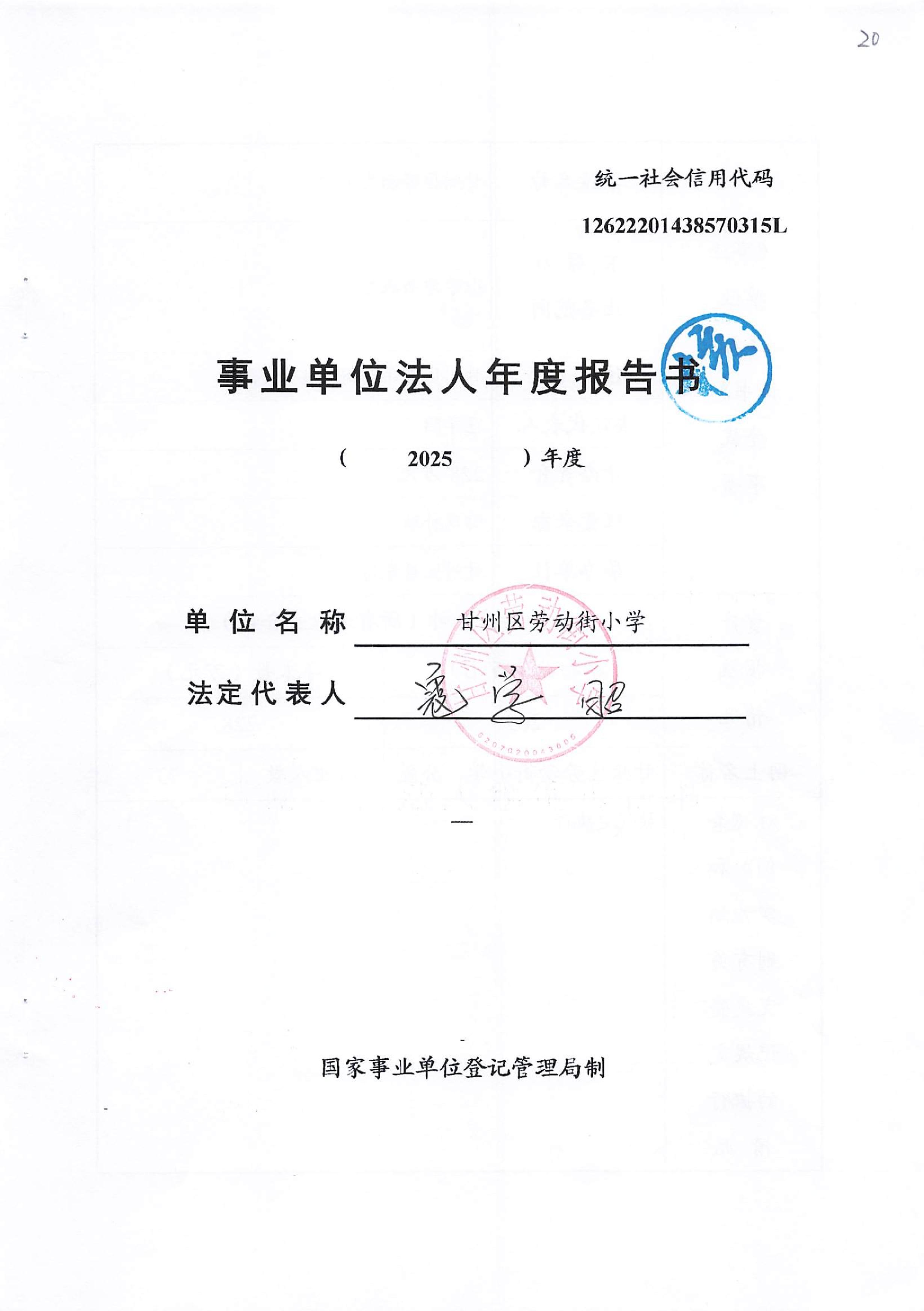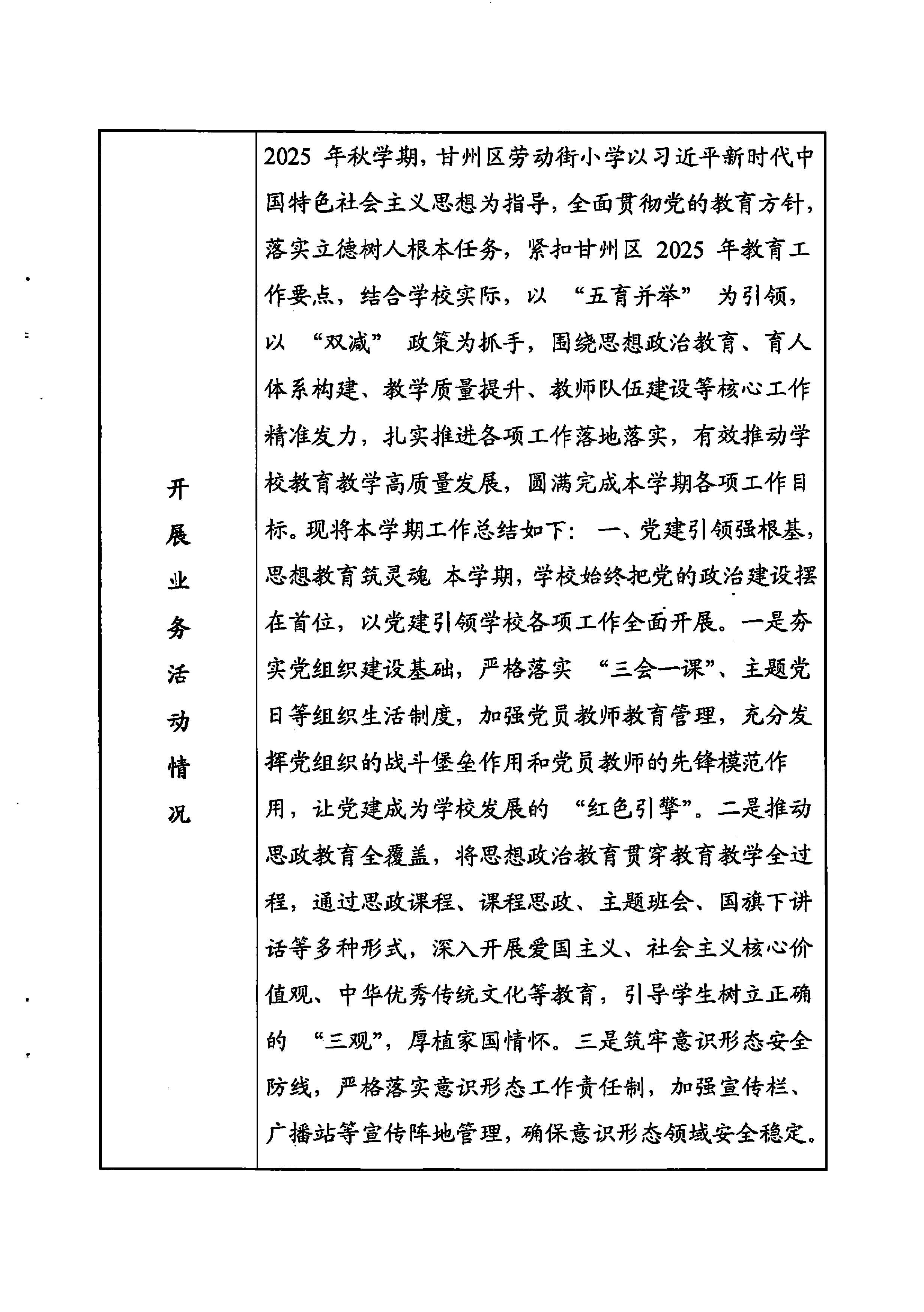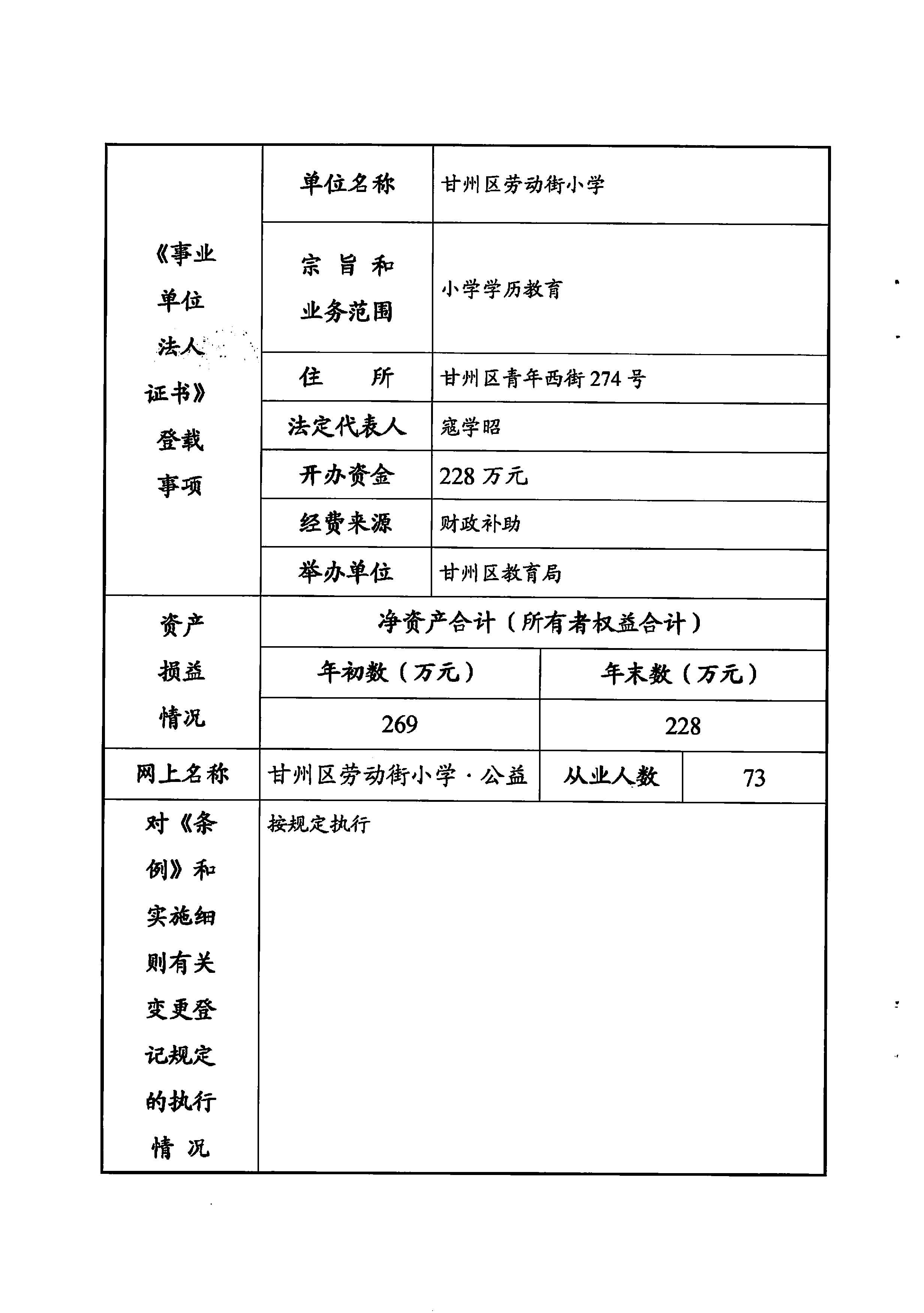 甘州区劳动街小学2025年度事业单位法人年度报告书