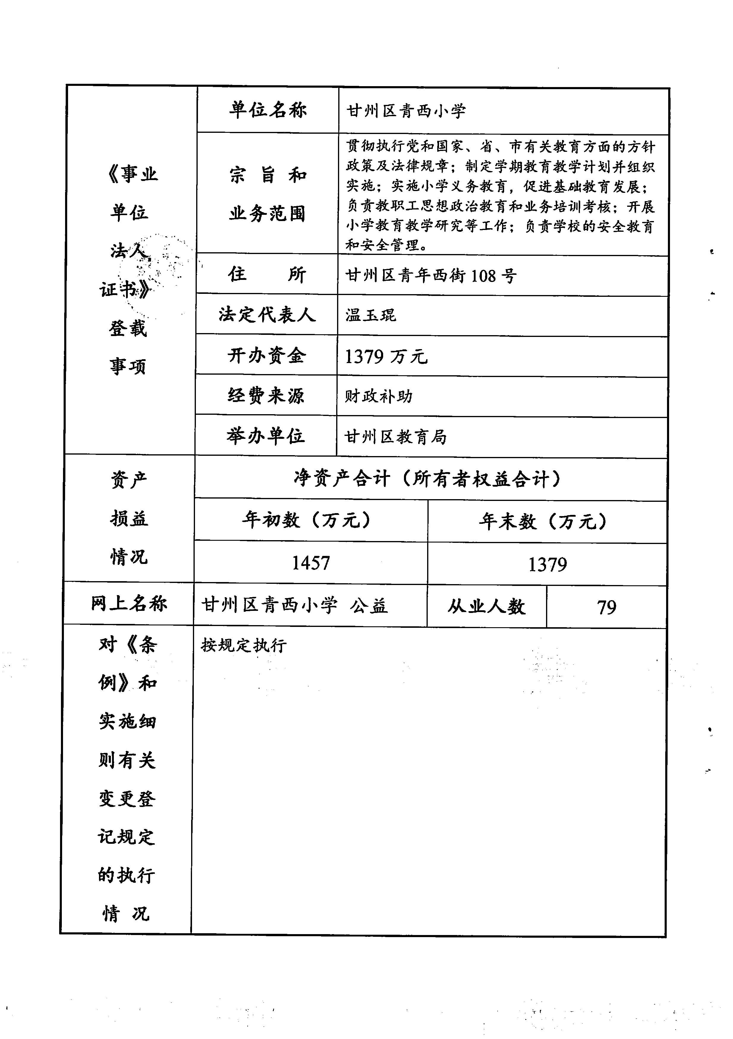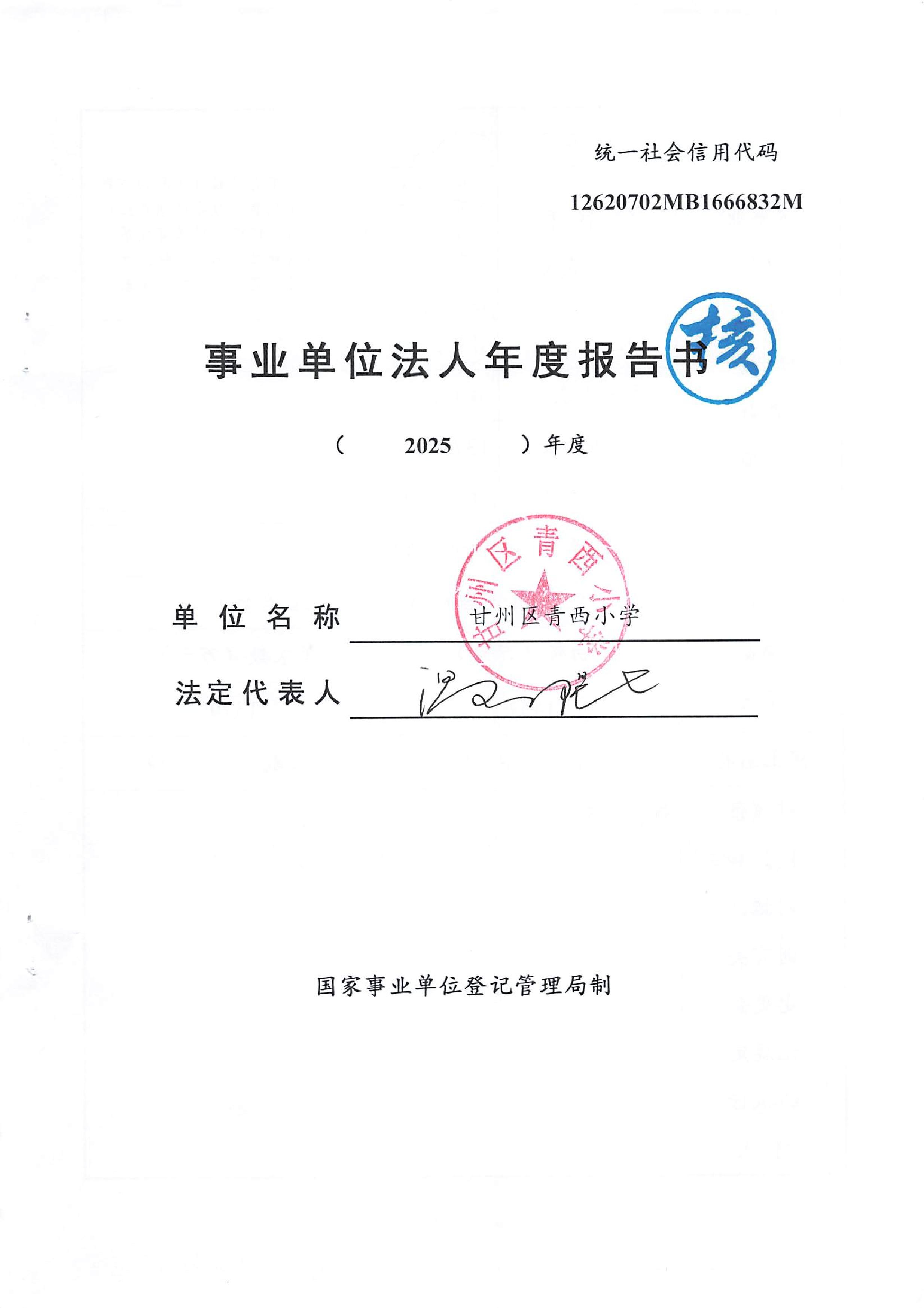 甘州区青西小学2025年度事业单位法人年度报告书