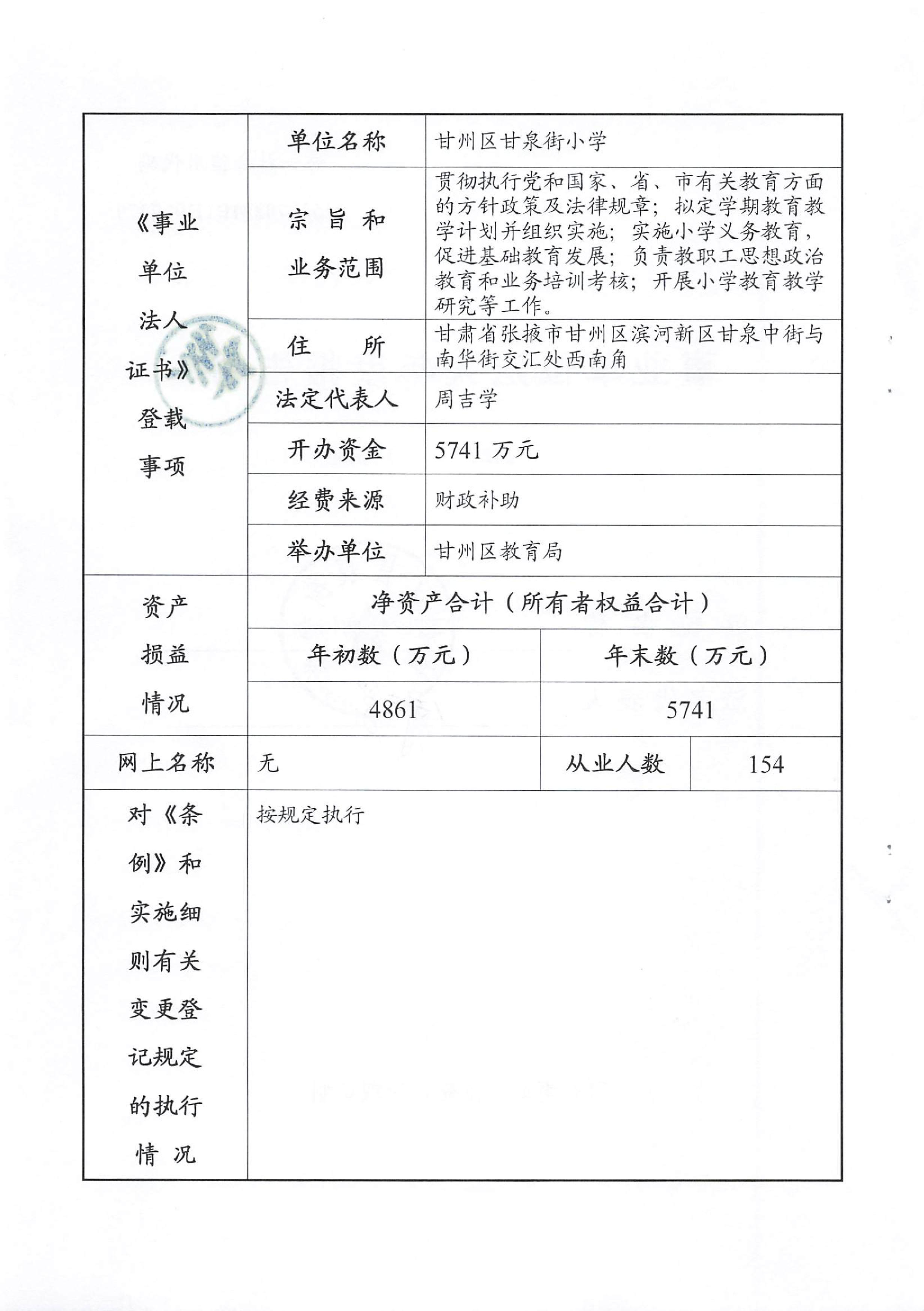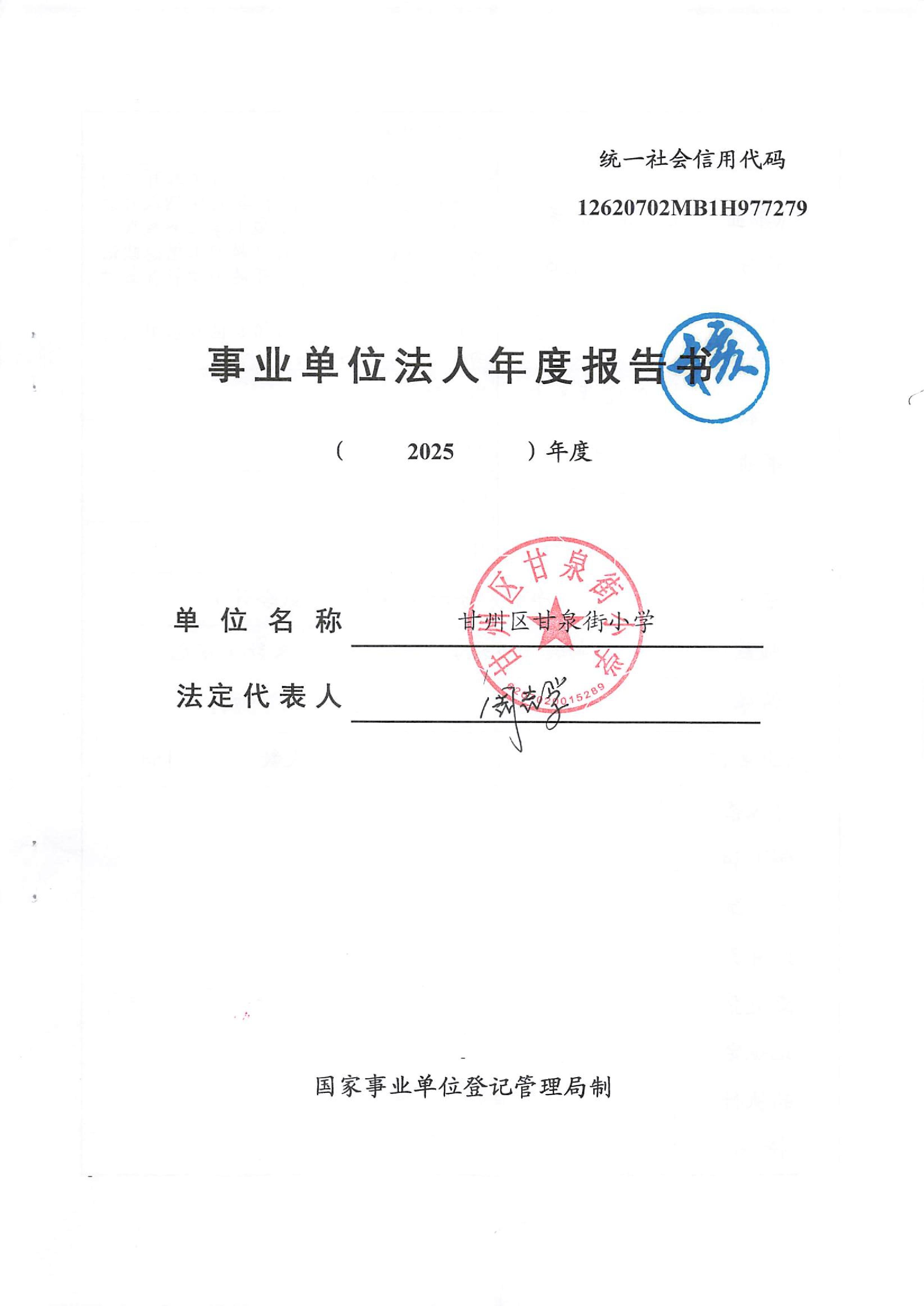 甘州区甘泉街小学2025年度事业单位法人年度报告书
