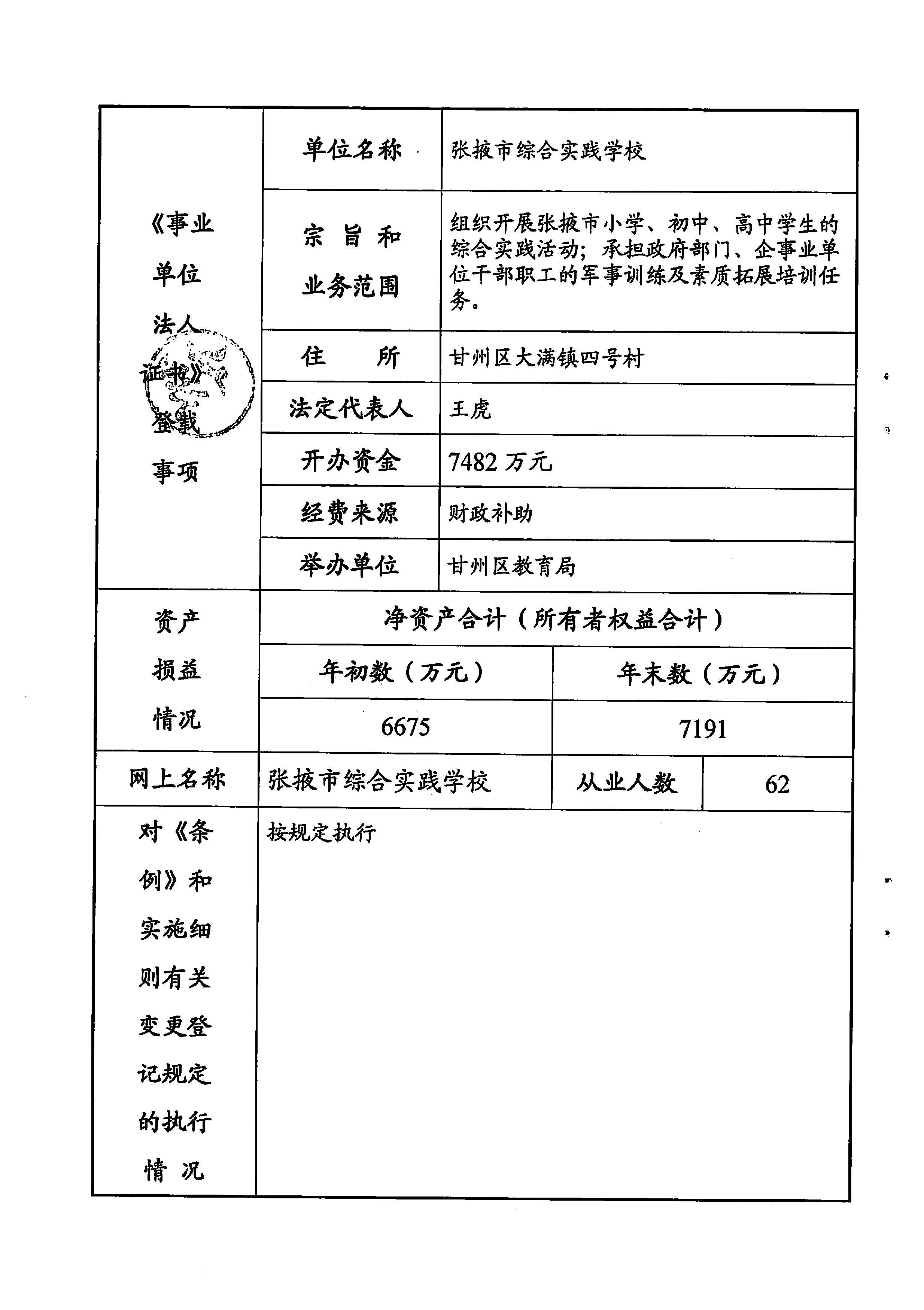张掖市综合实践学校2025年度事业单位法人年度报告书