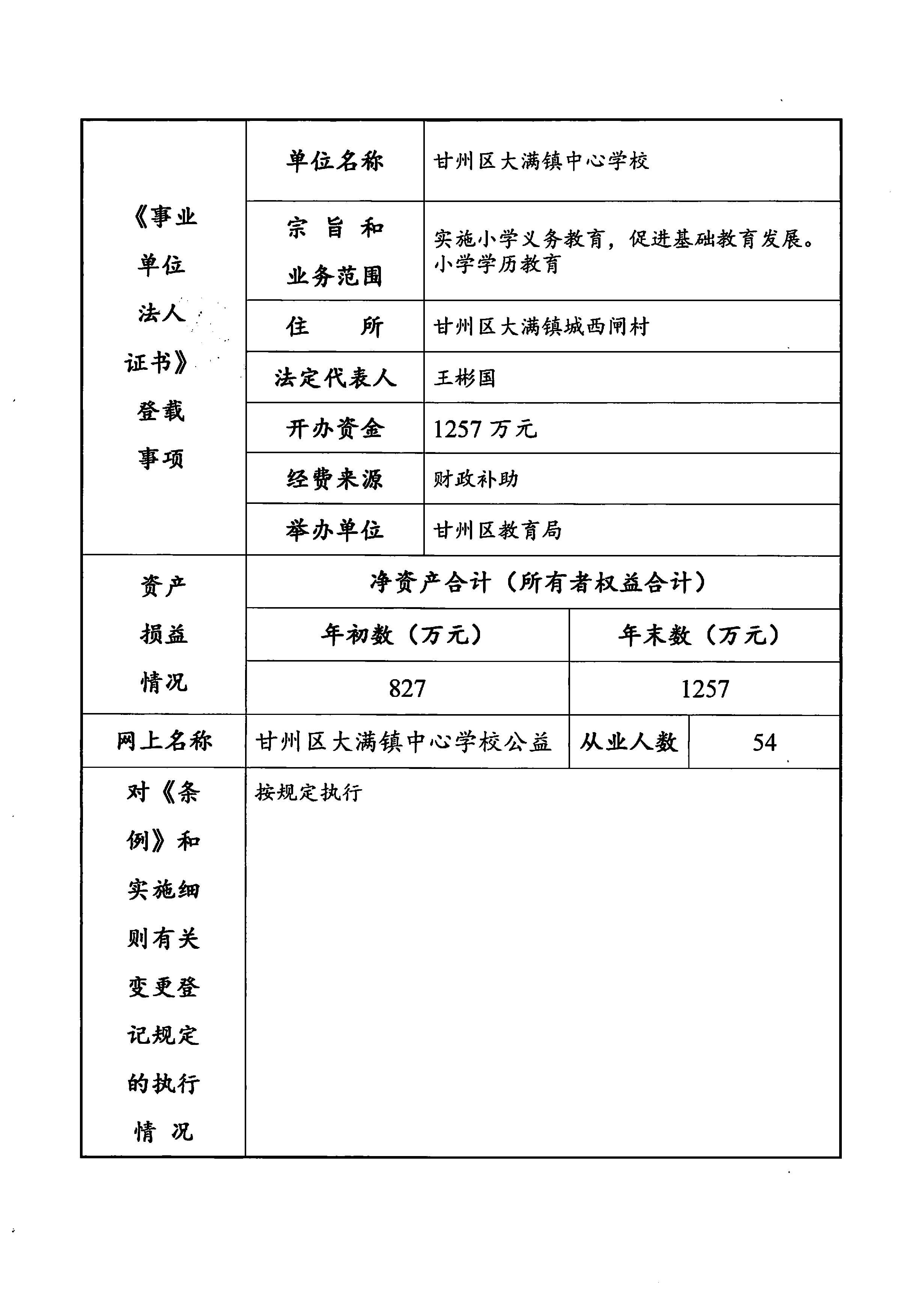 甘州区大满镇中心学校2025年度事业单位法人年度报告书