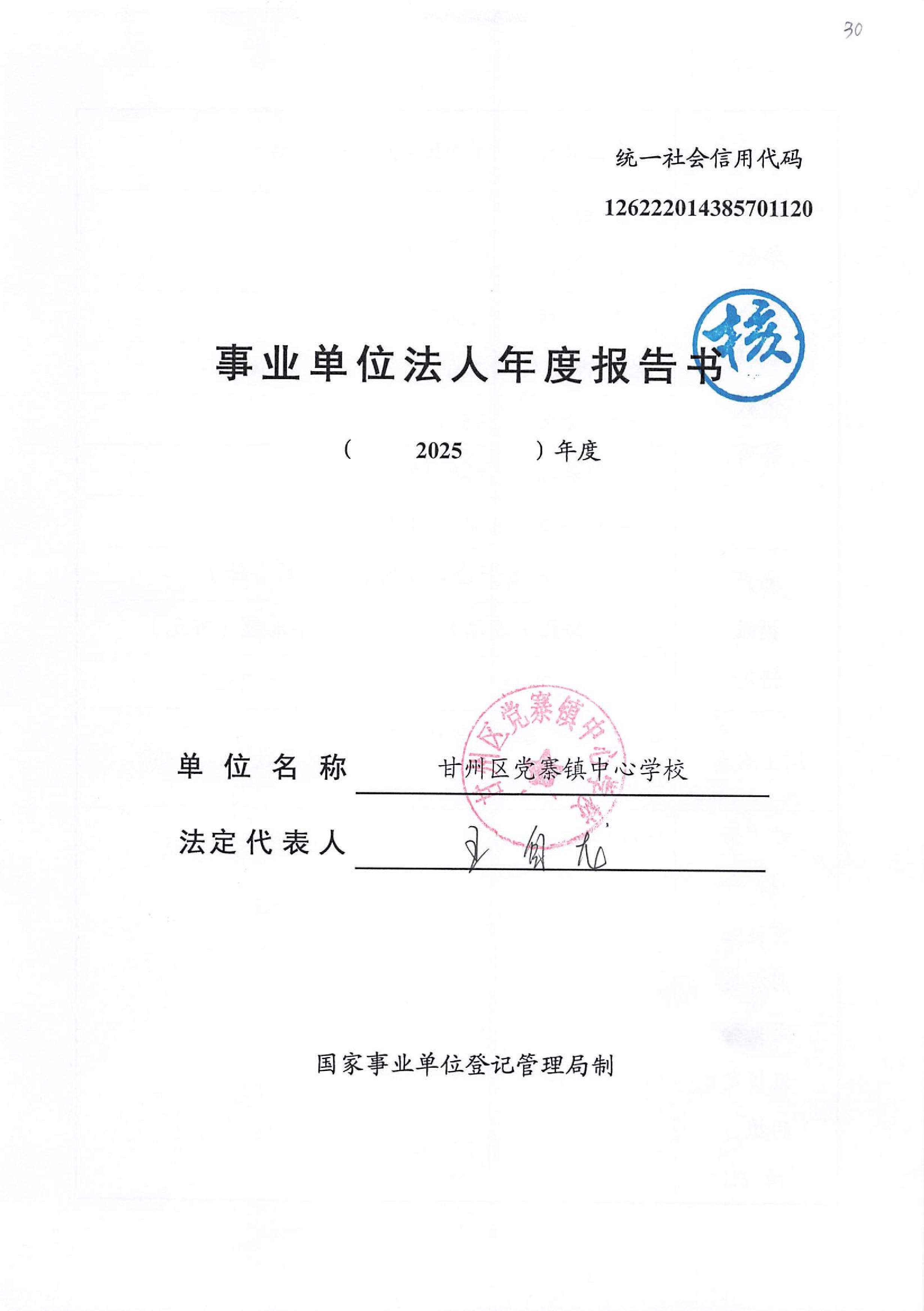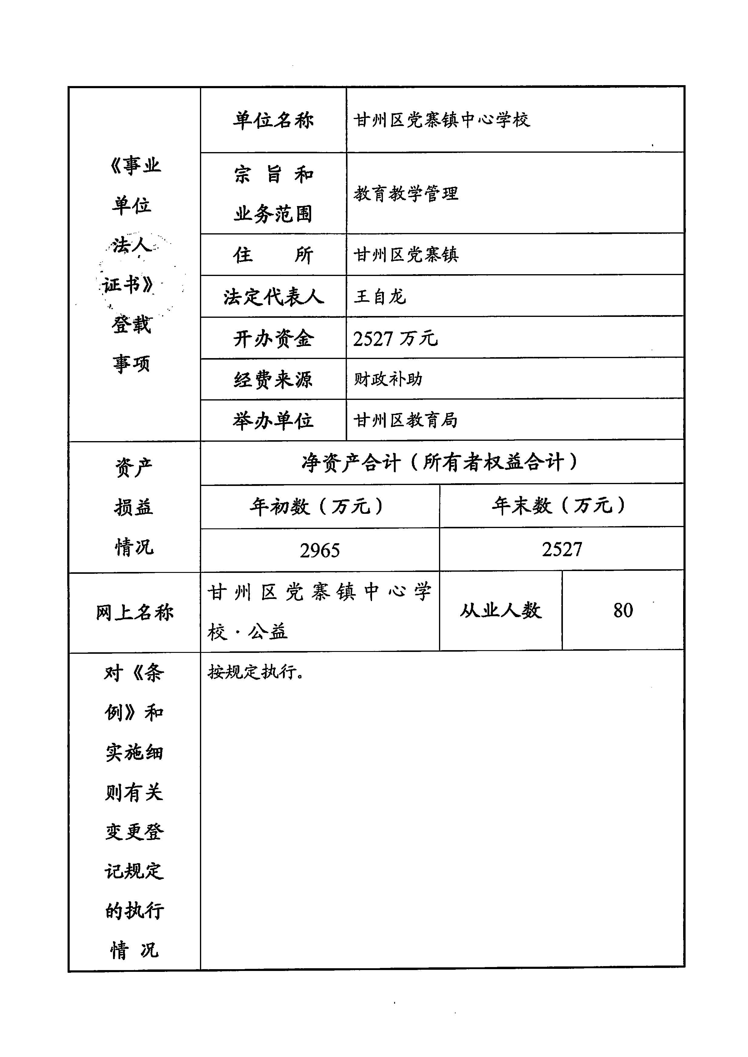 甘州区党寨镇中心学校2025年度事业单位法人年度报告书