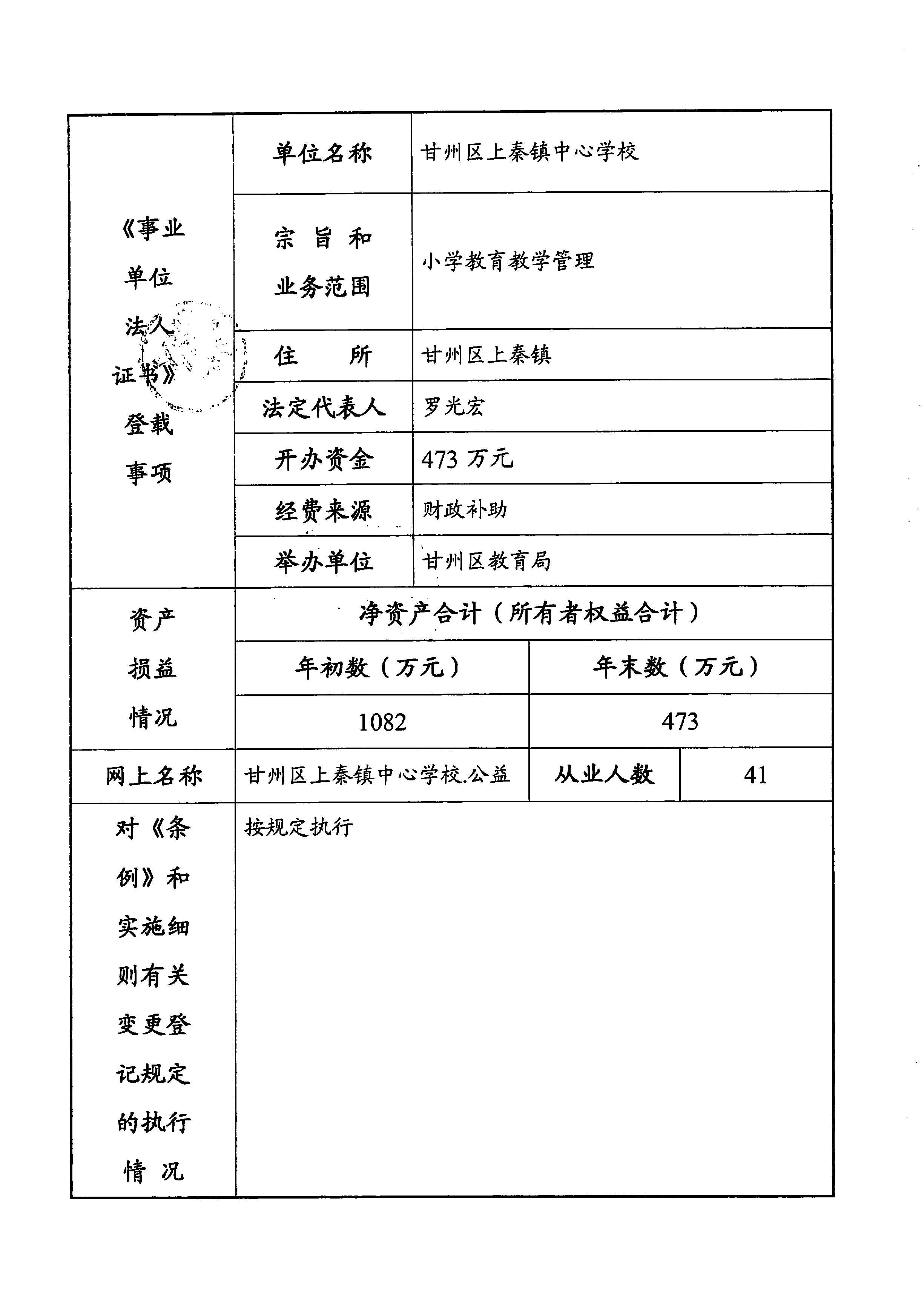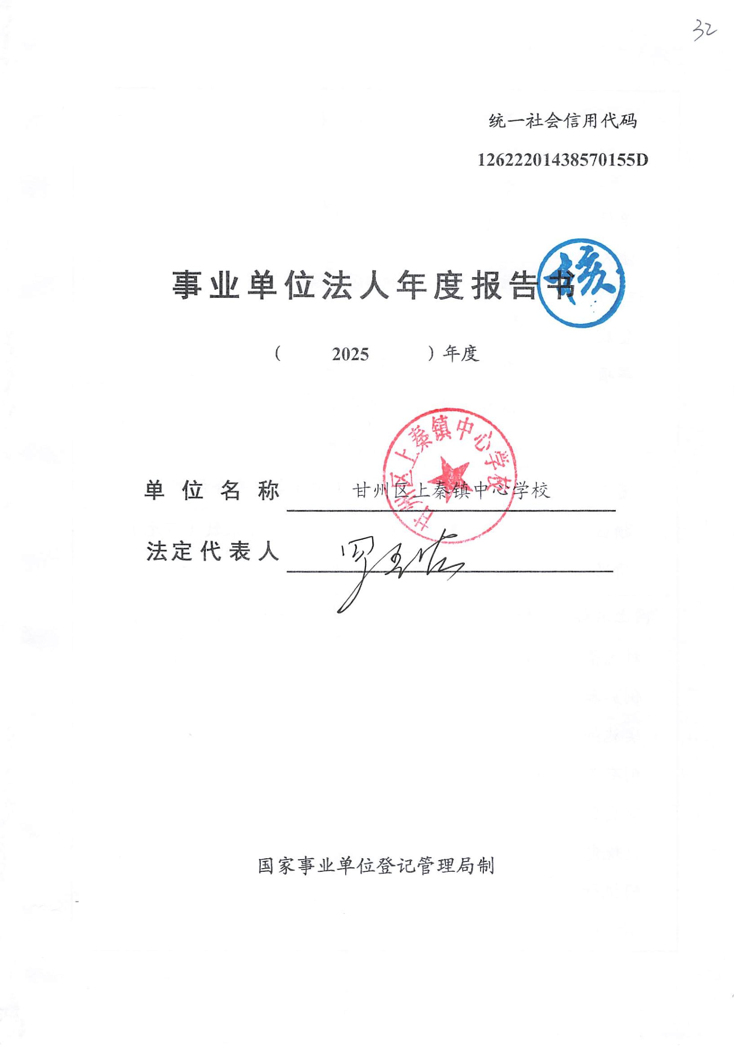 甘州区上秦镇中心学校2025年度事业单位法人年度报告书