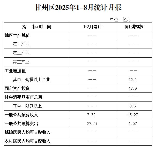 甘州区2025年1-8月统计月报