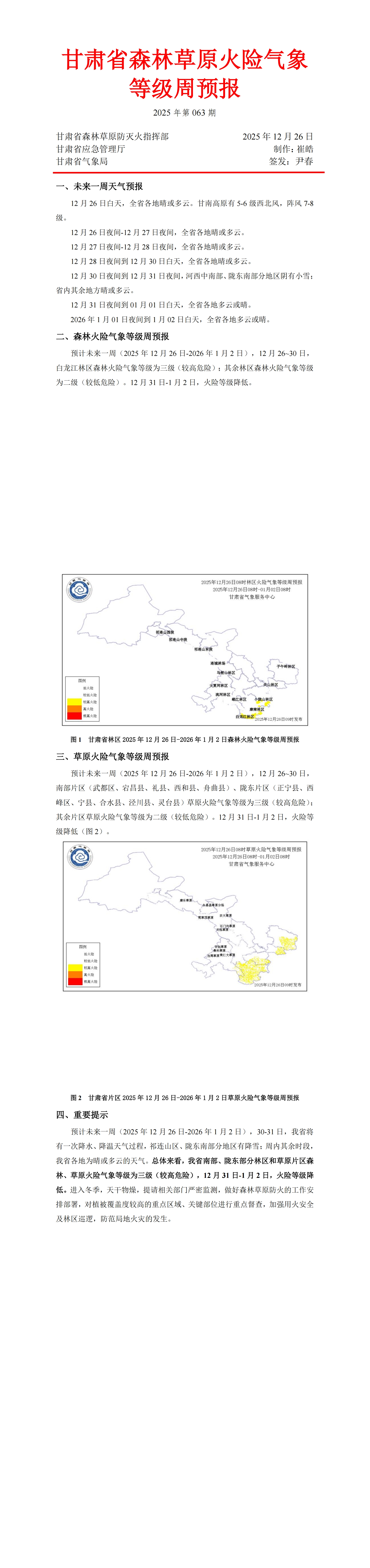 甘肃省森林草原火险气象等级周预报