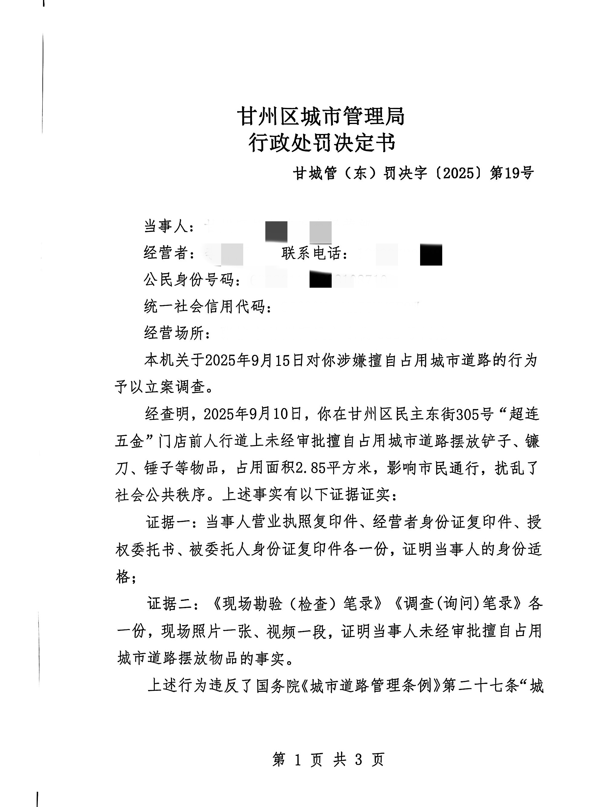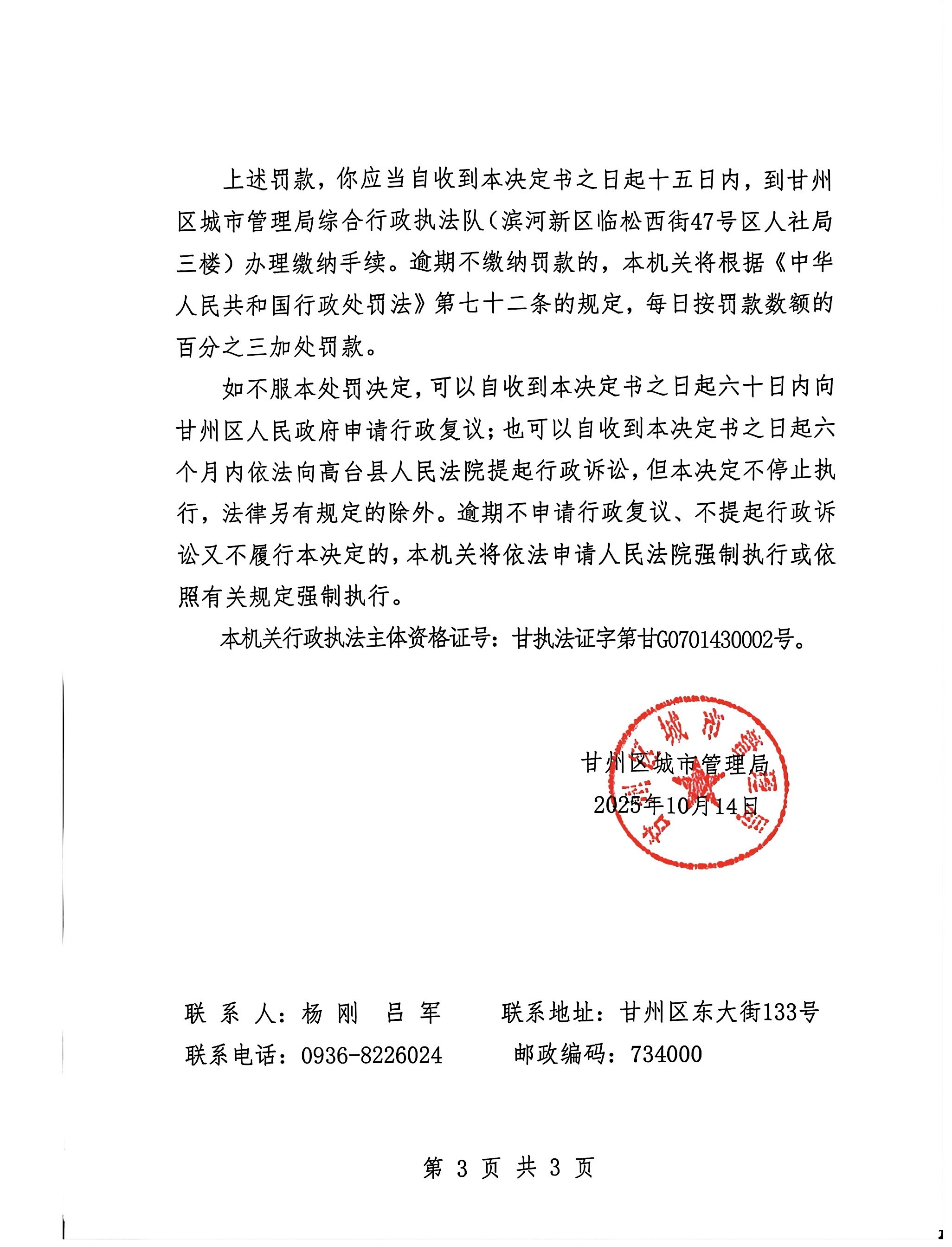 甘城管(东)罚决字〔2025〕第19号