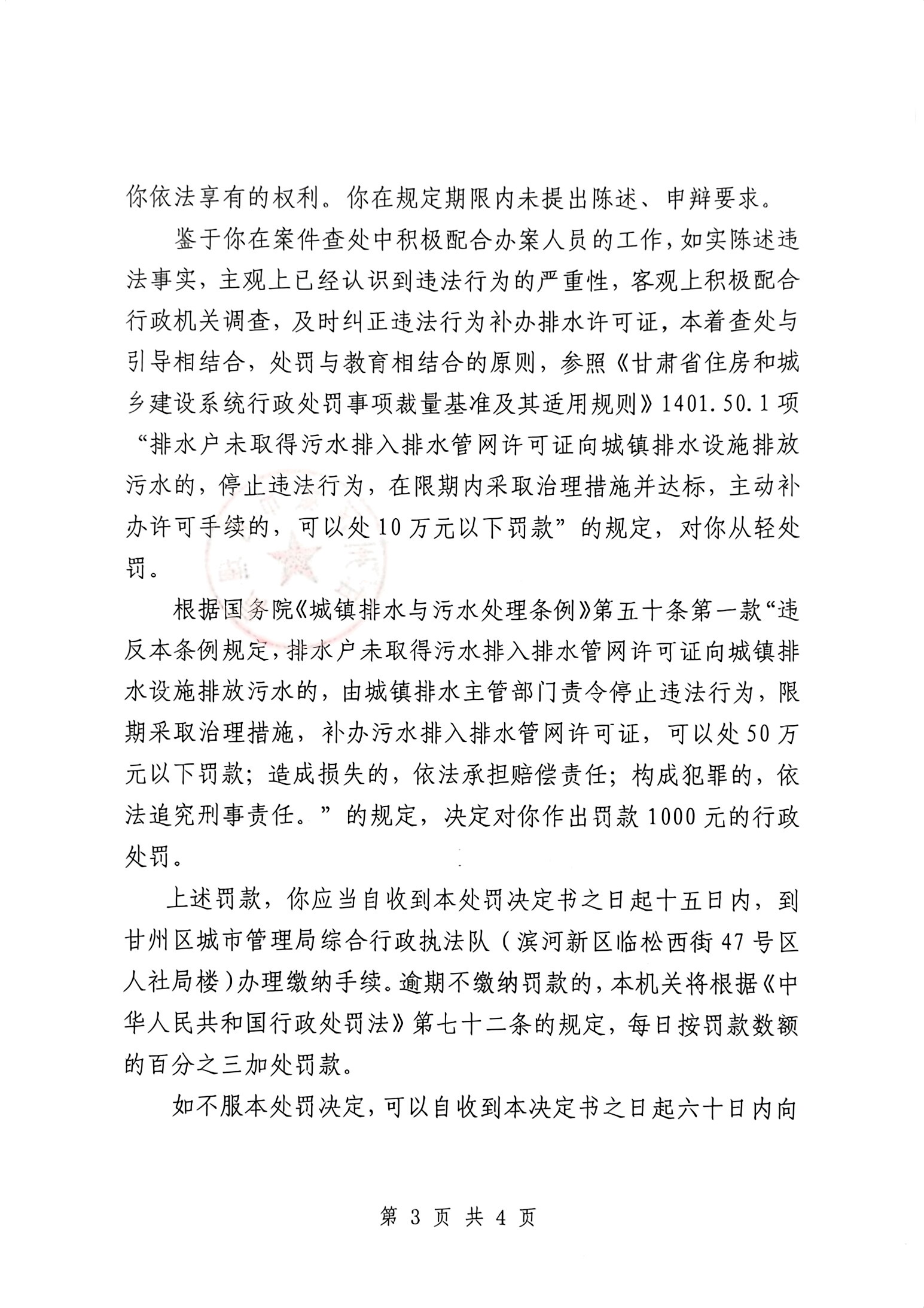 甘州区城市管理局行政处罚决定书