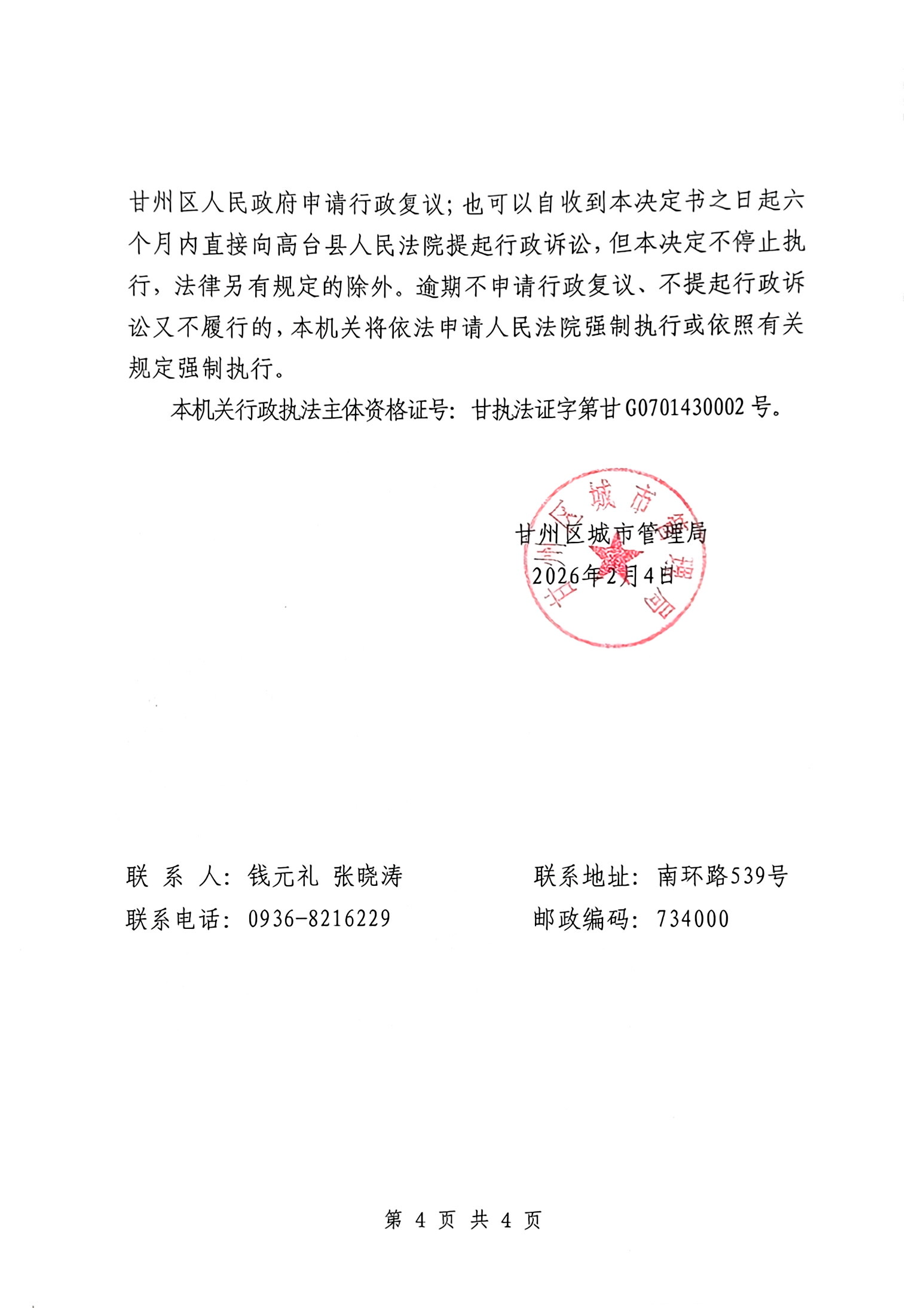 甘城管(西)罚决〔2026〕2号
