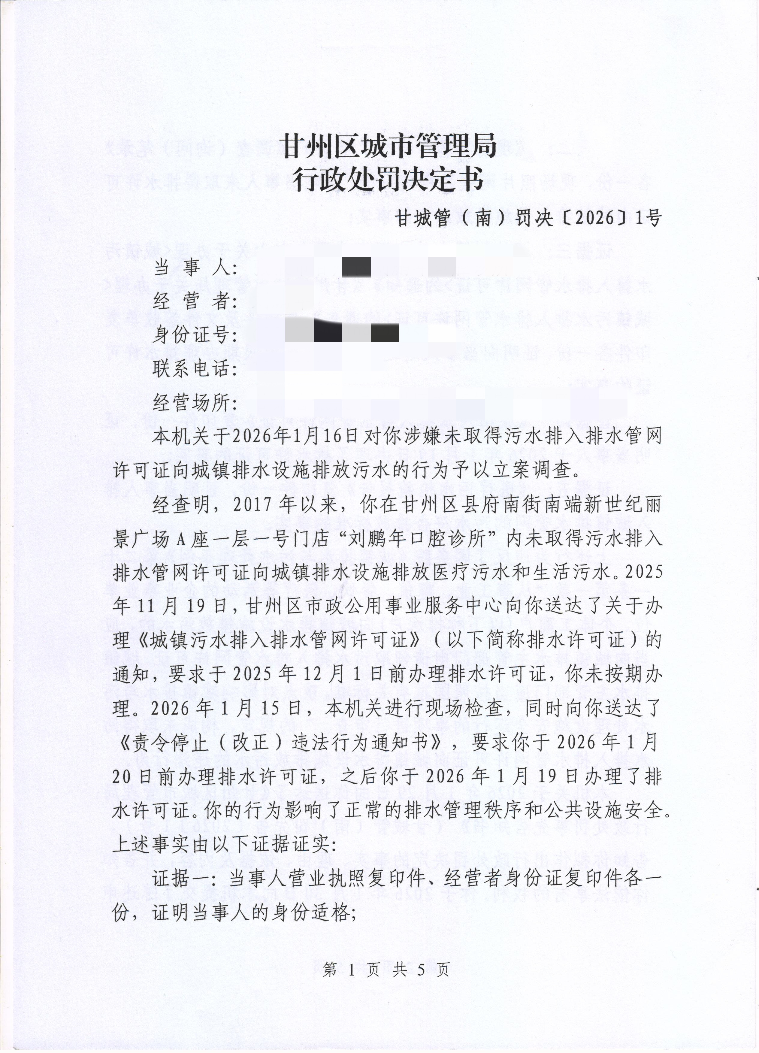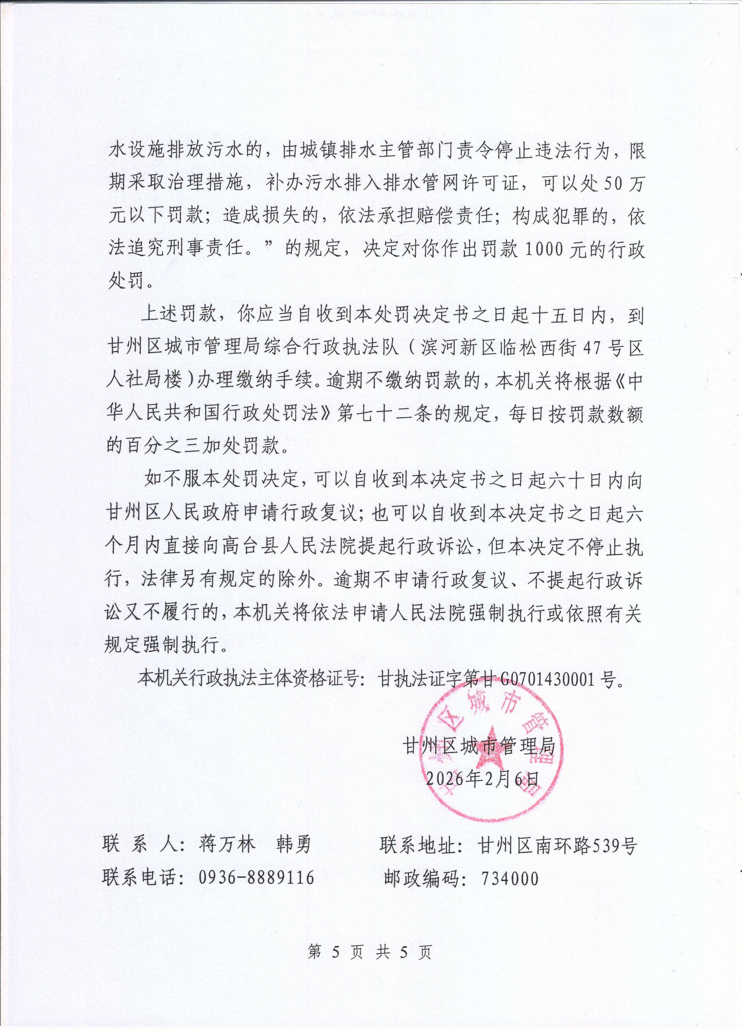 甘城管(南)罚决〔2026〕1号