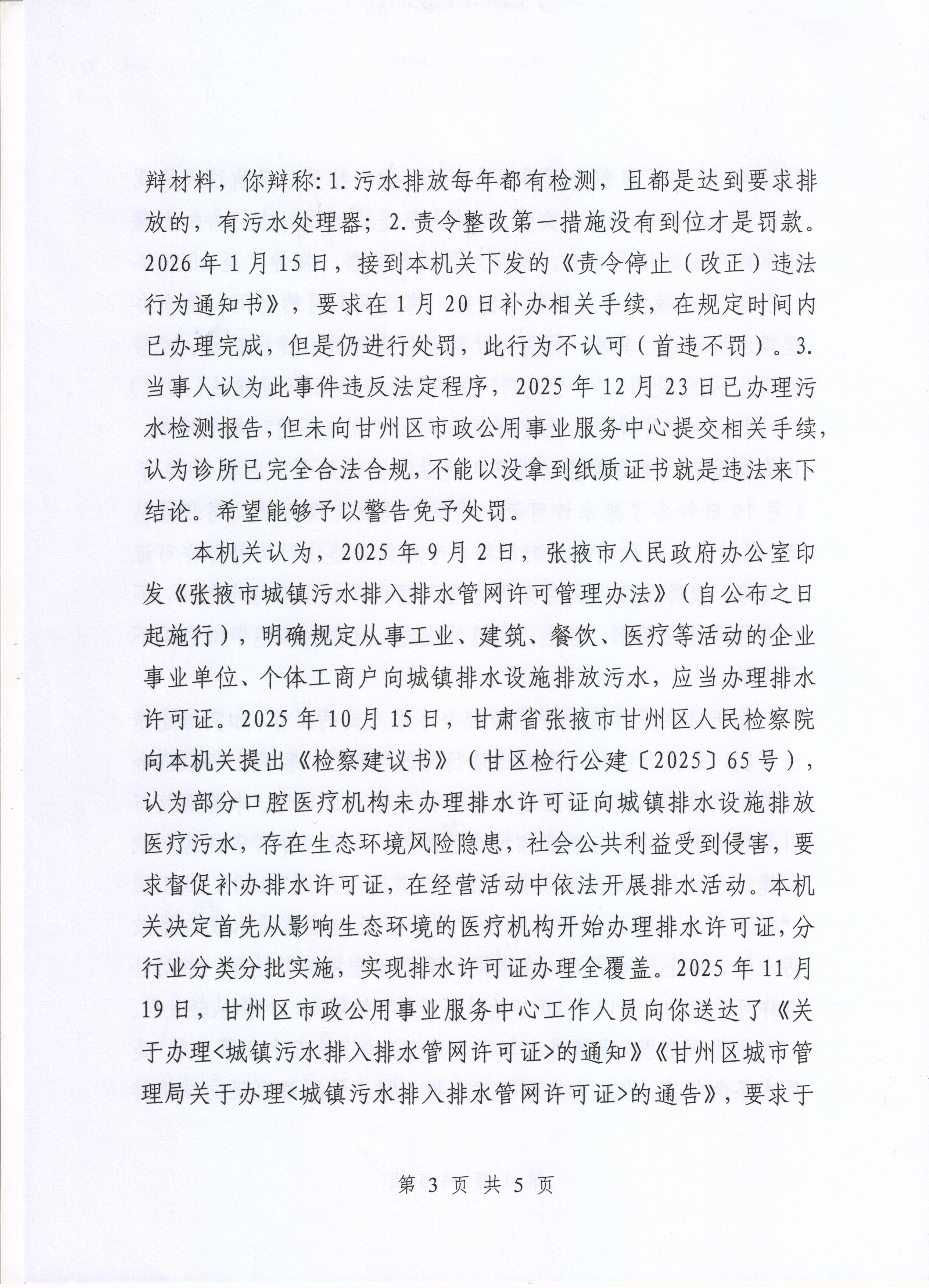 甘州区城市管理局行政处罚决定书