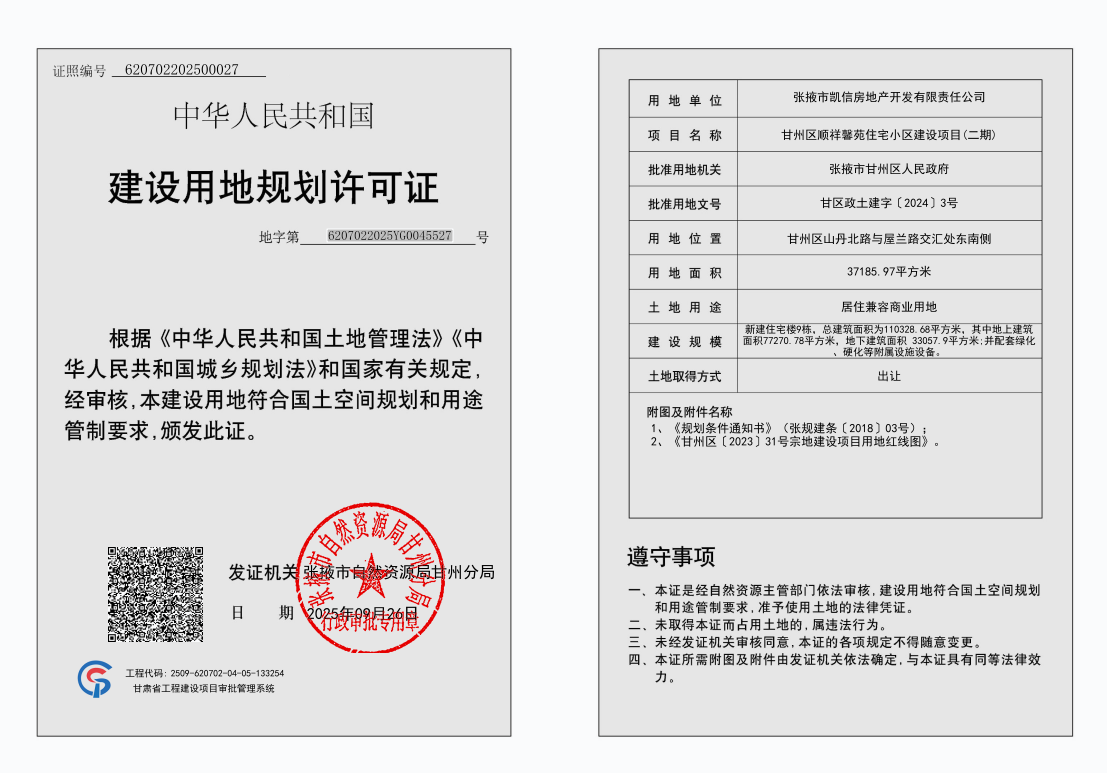 甘州区顺祥馨苑住宅小区建设项目(二期)用地规划许可证批后公示