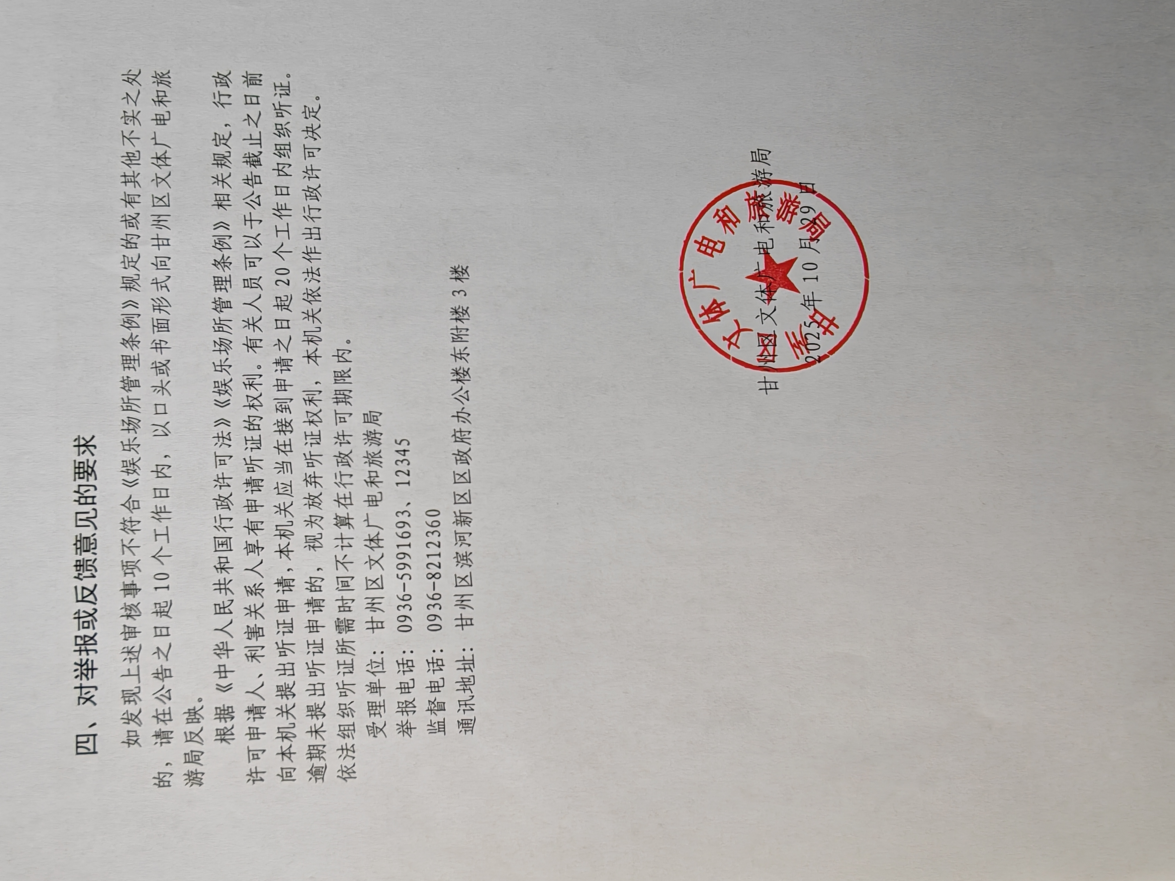 关于张掖市甘州区亮点娱乐会所设立的公示