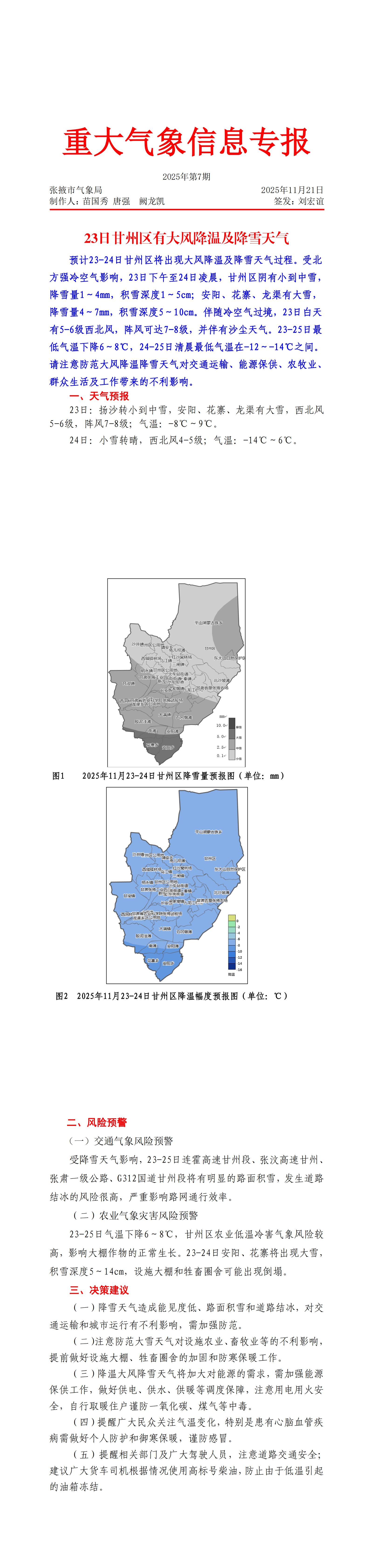 重大气象信息专报