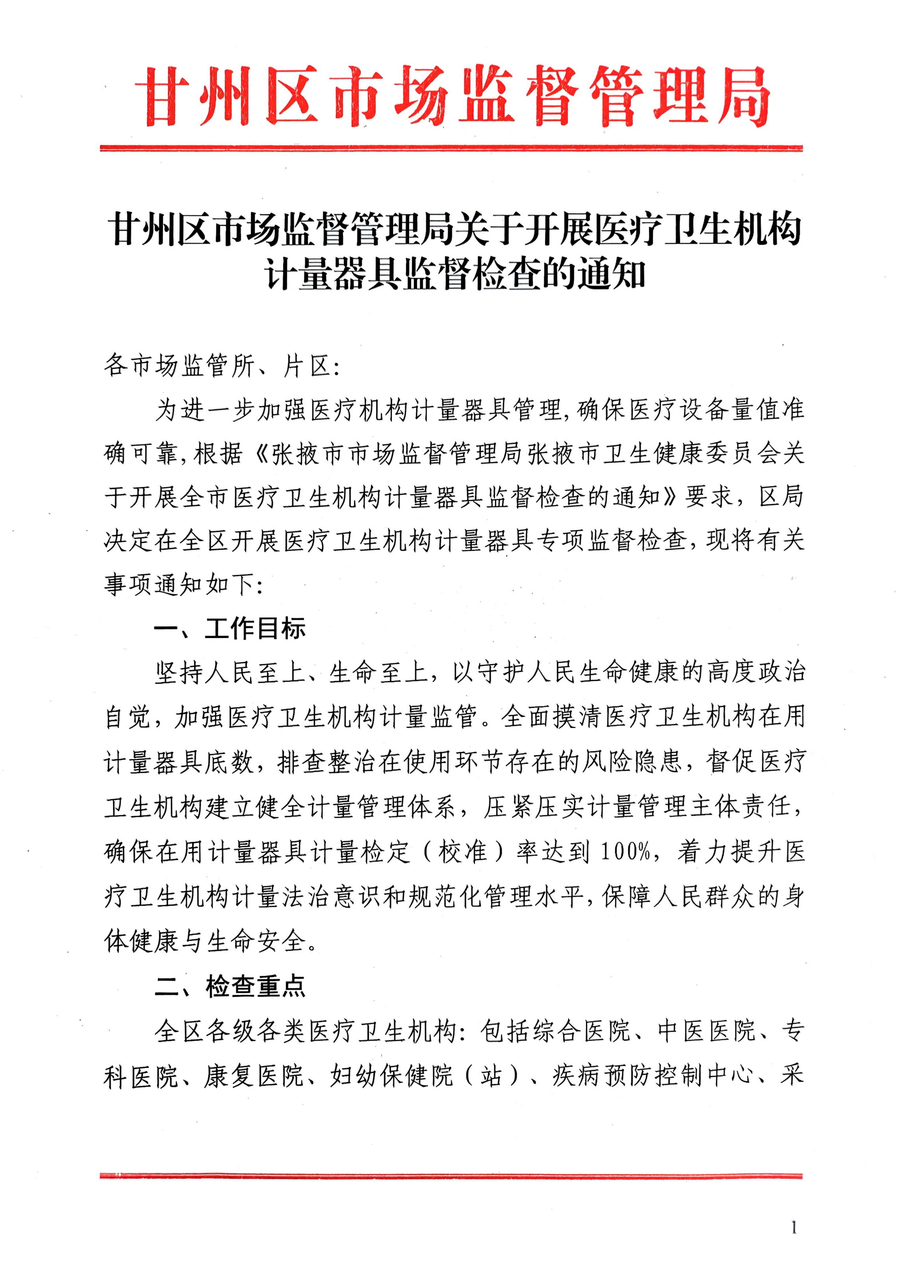 甘州区市场监督管理局关于开展医疗卫生机构计量器具监督检查的通知
