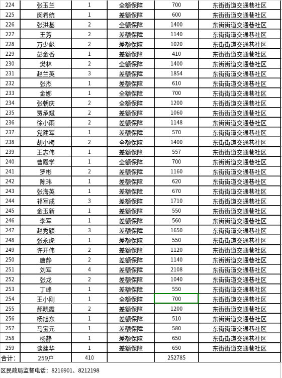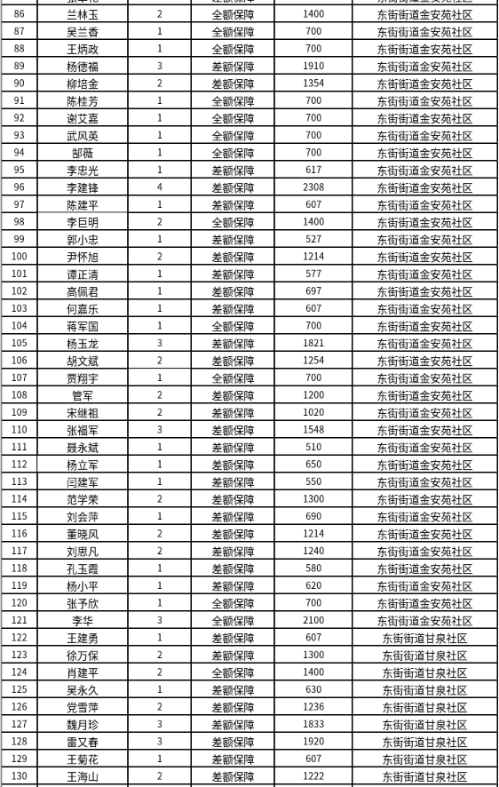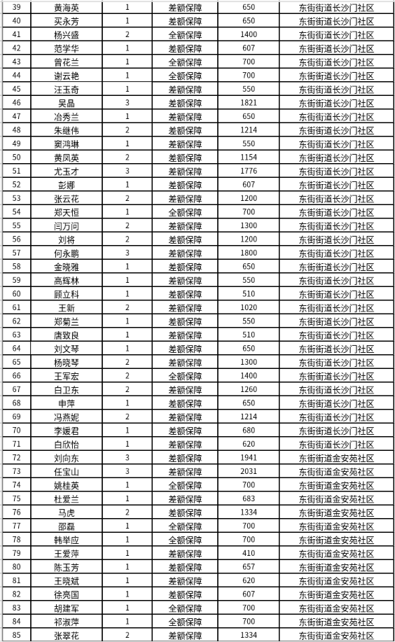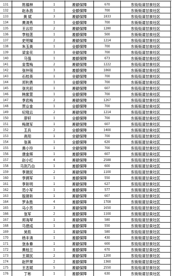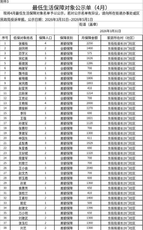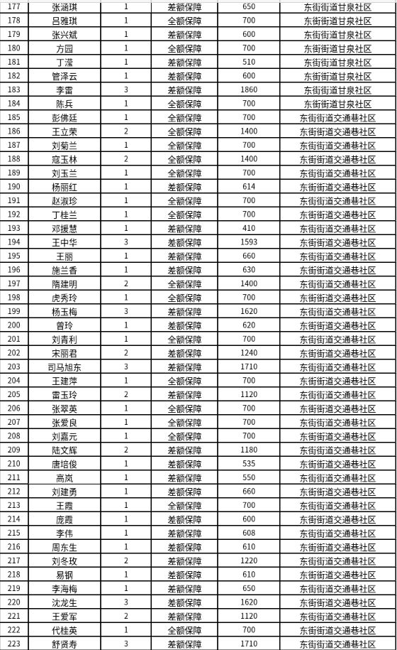 东街街道4月份最低生活保障对象公示