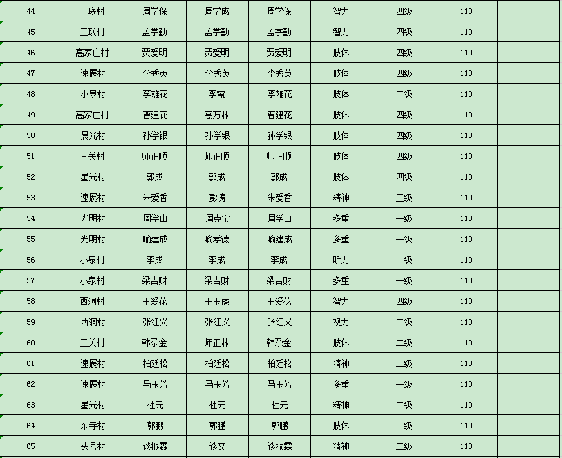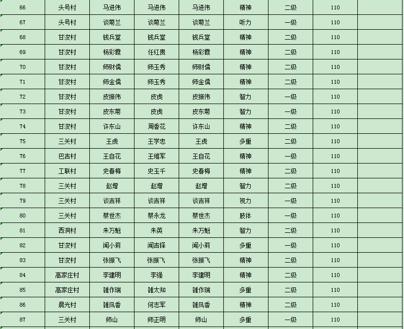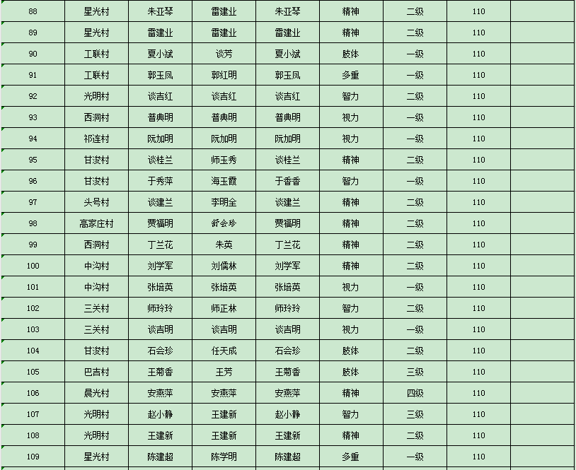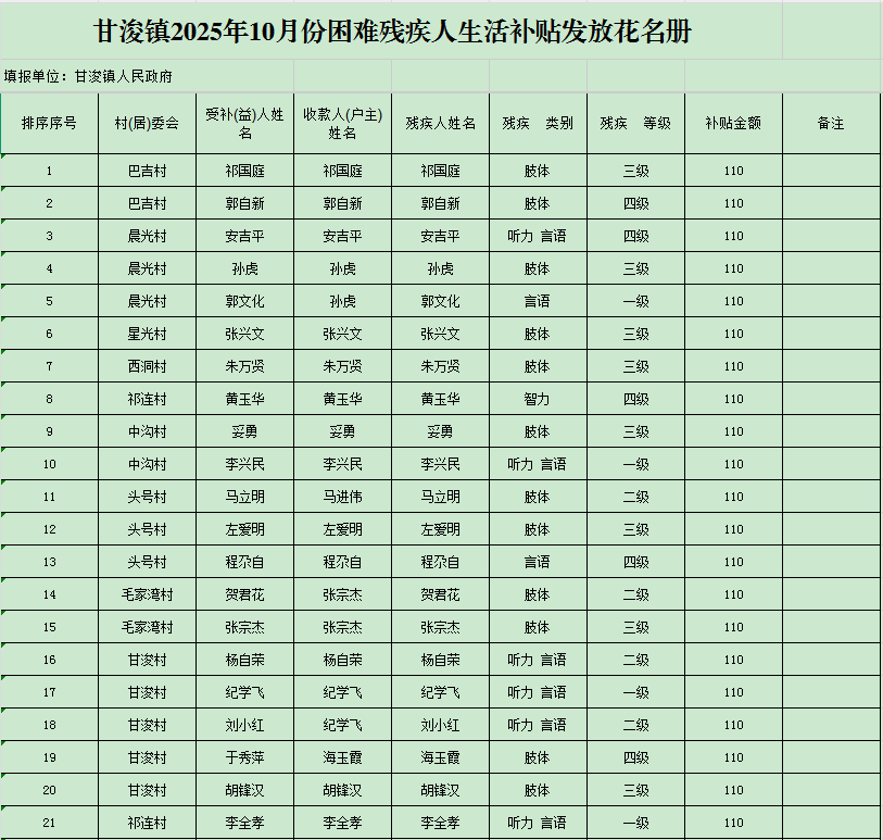 甘浚镇2025年10月份困难残疾人生活补贴发放花名册