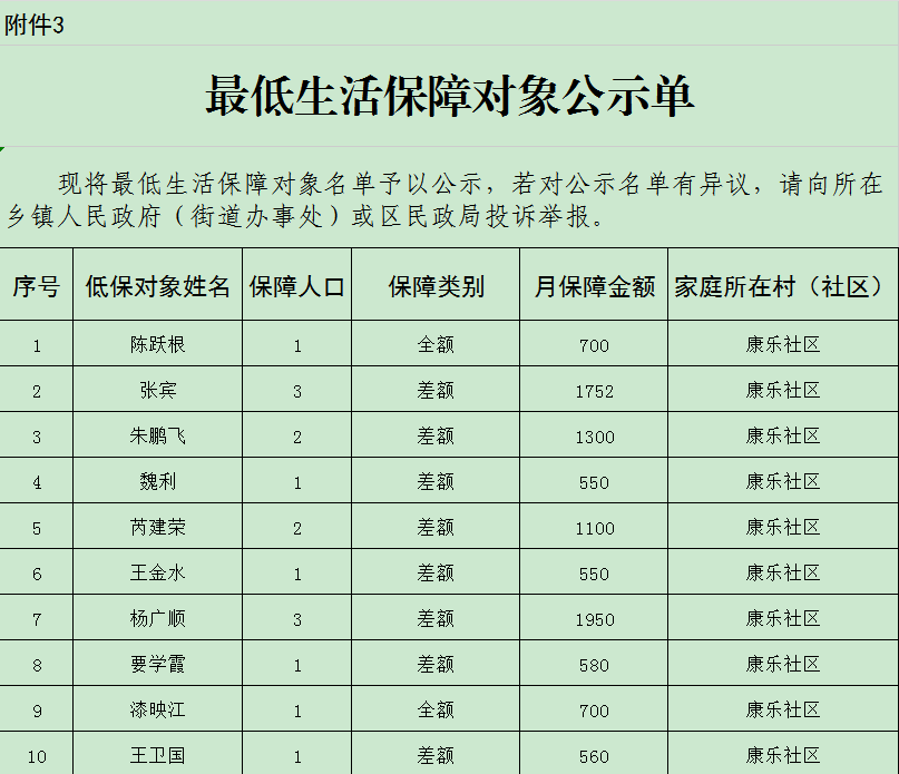 2024年12月最低生活保障公示