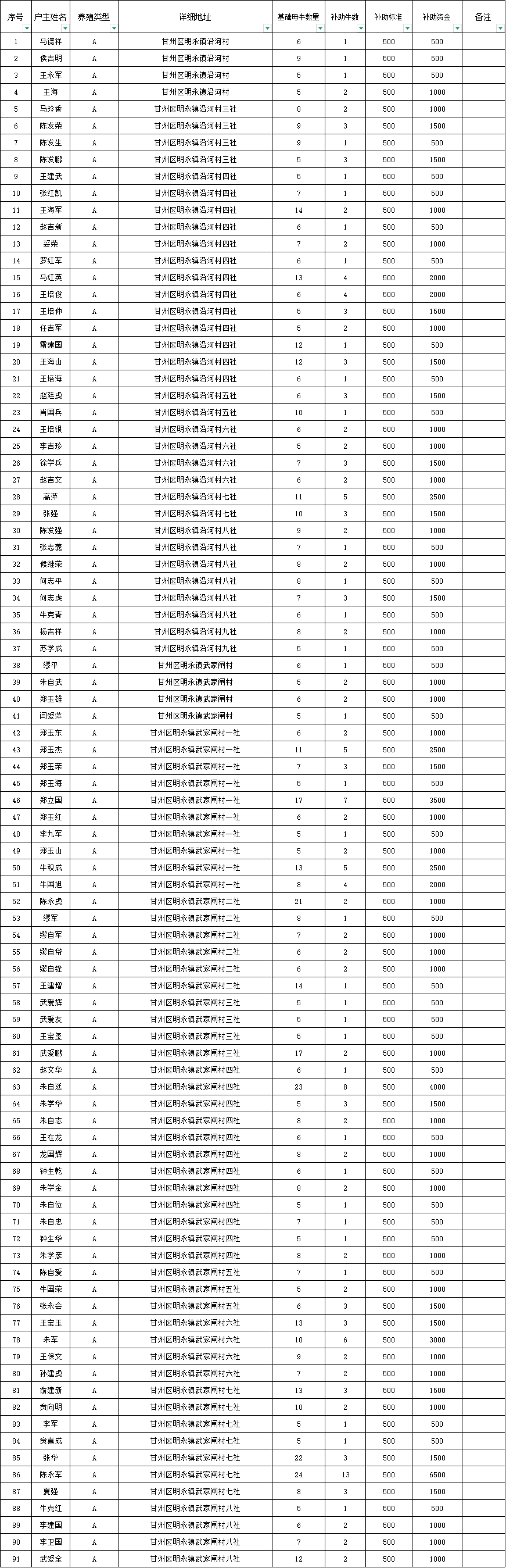 明永镇沿河村、武家闸村肉牛增量提质行动项目“见犊补母”农户补助资金花名册(第二批)