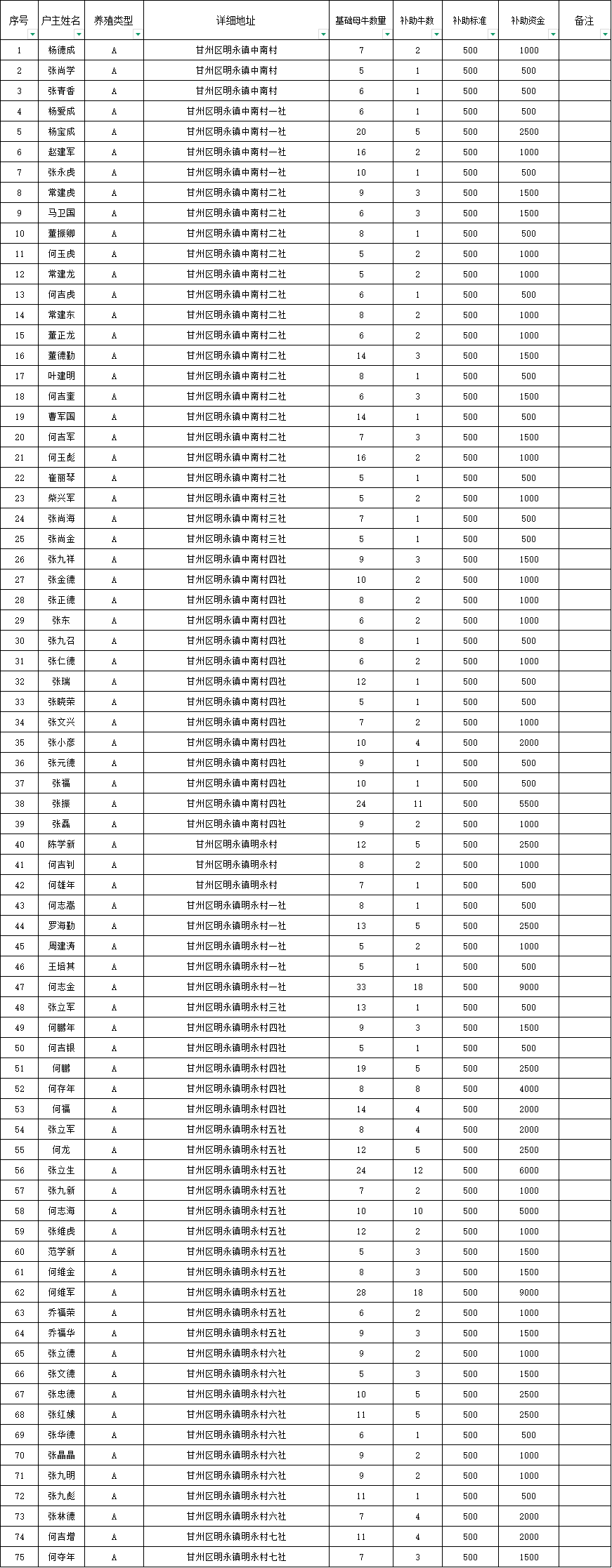 明永镇中南村、明永村肉牛增量提质行动项目“见犊补母”农户补助资金花名册(第二批)