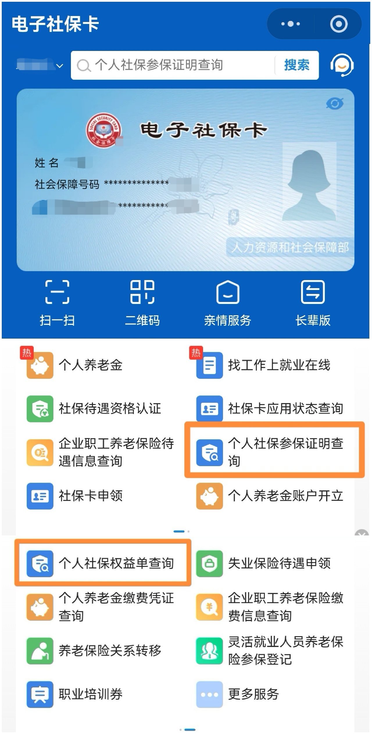 2️⃣ “个人社保参保证明查询”可以查你的社保在哪里交,总共交了几个月; “个人社保权益单查询”则是社保缴费的明细,包括养老、失业、工伤分别交了多少。