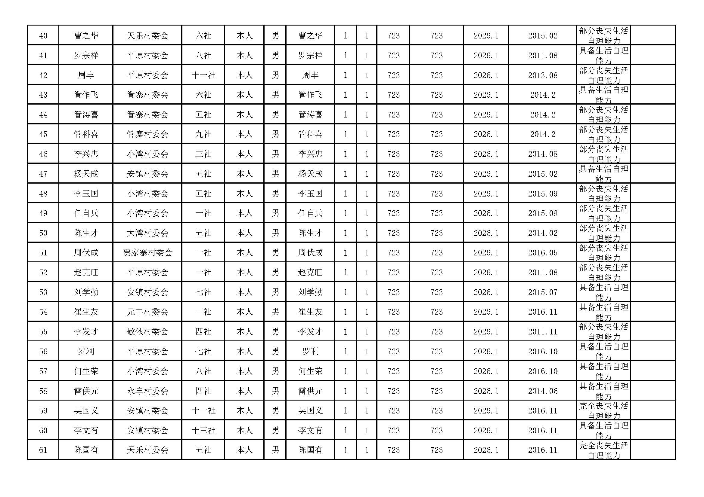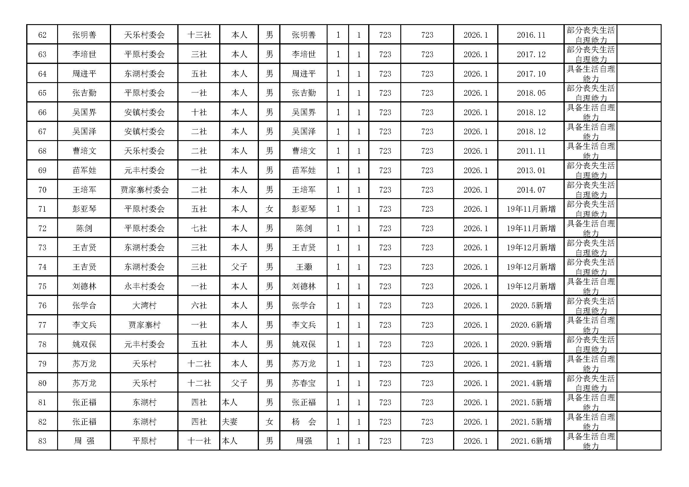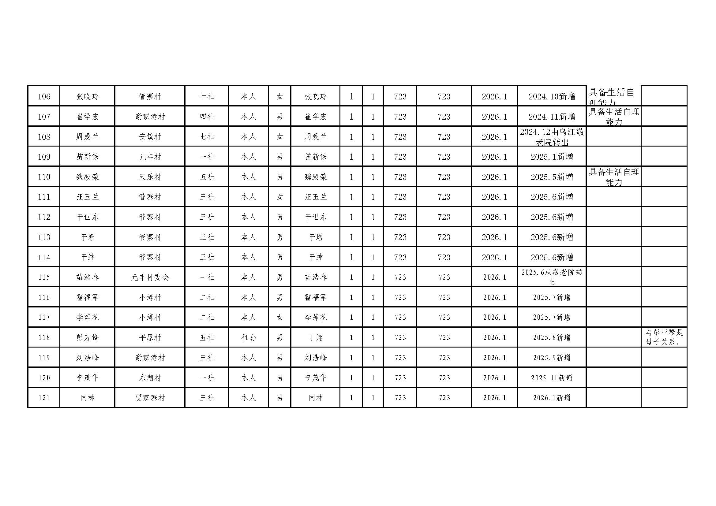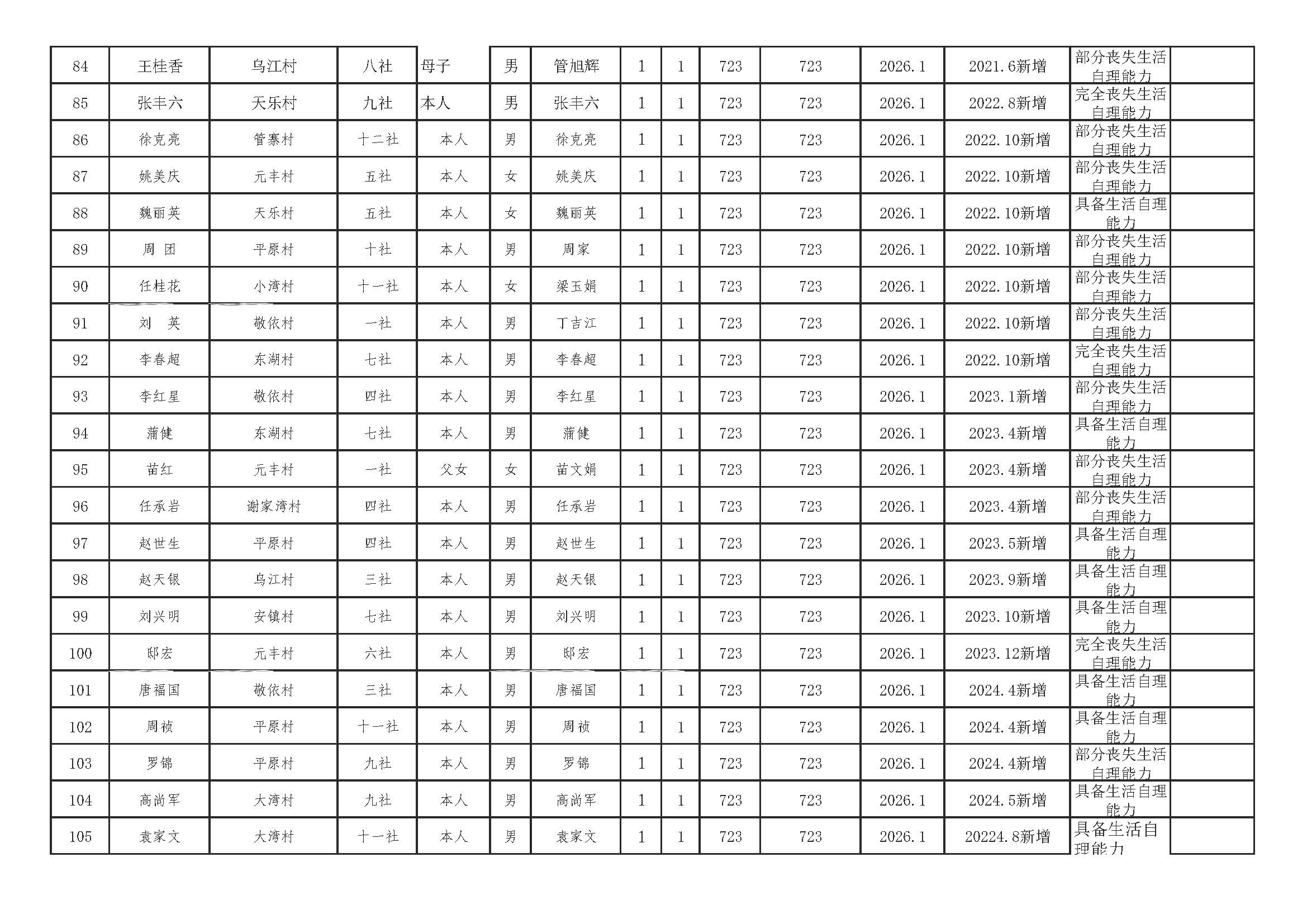 乌江镇2026年2月分散特困供养人员发放册