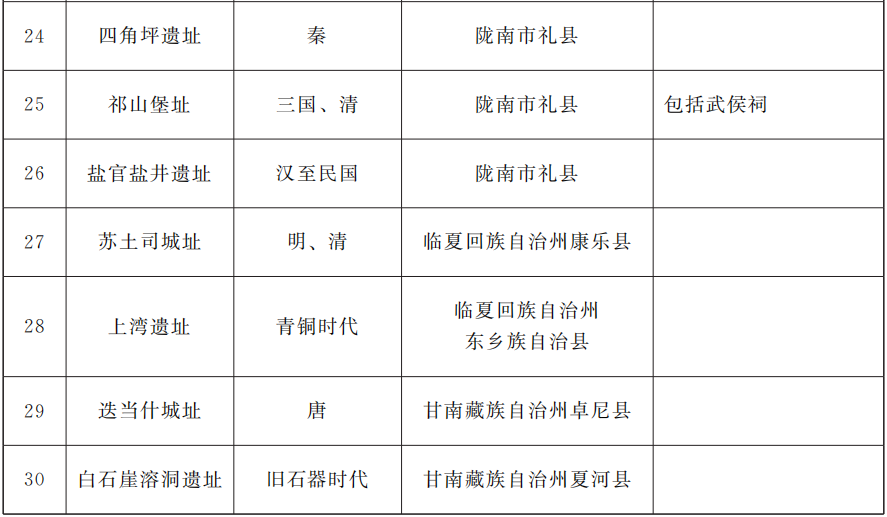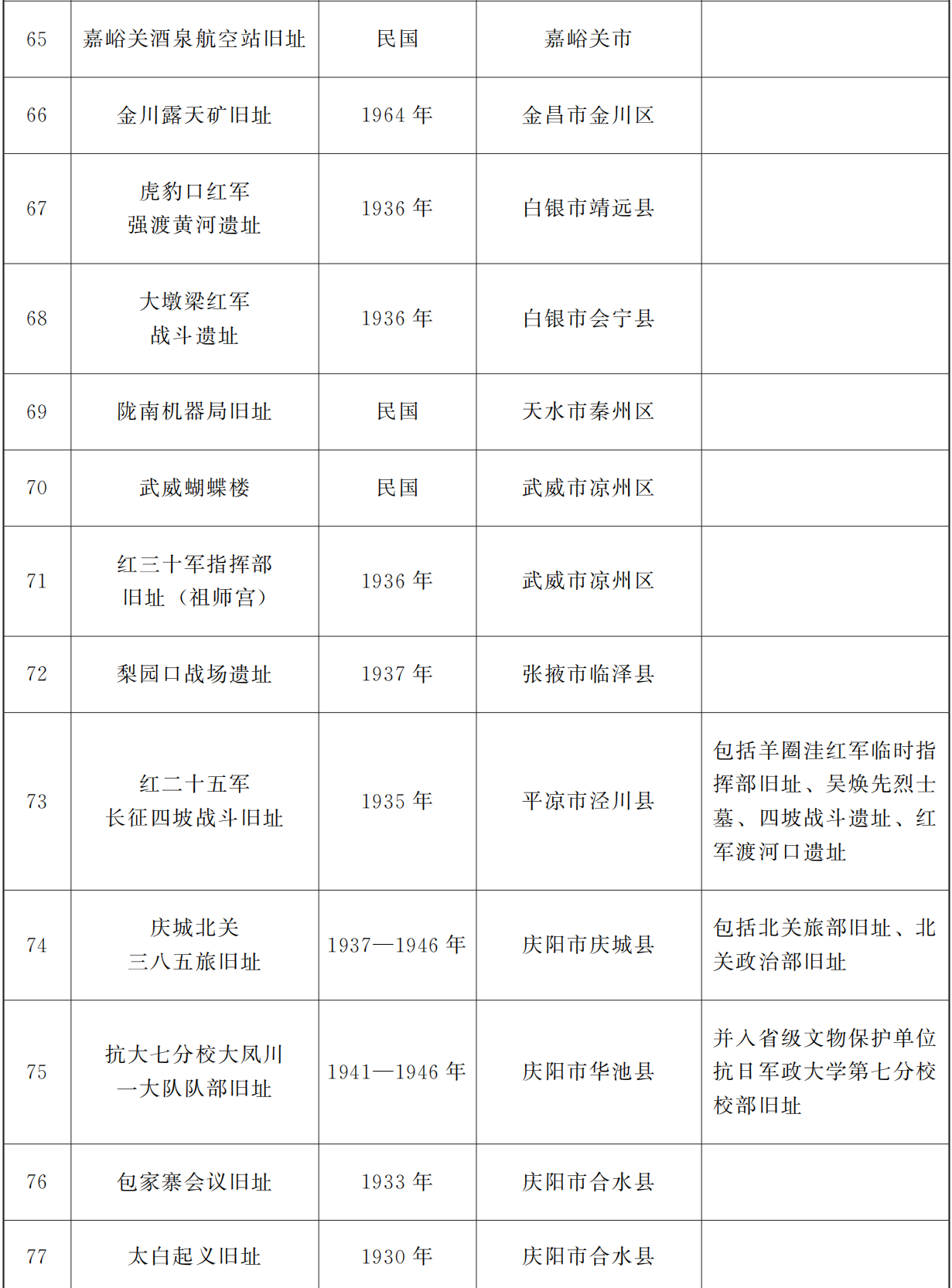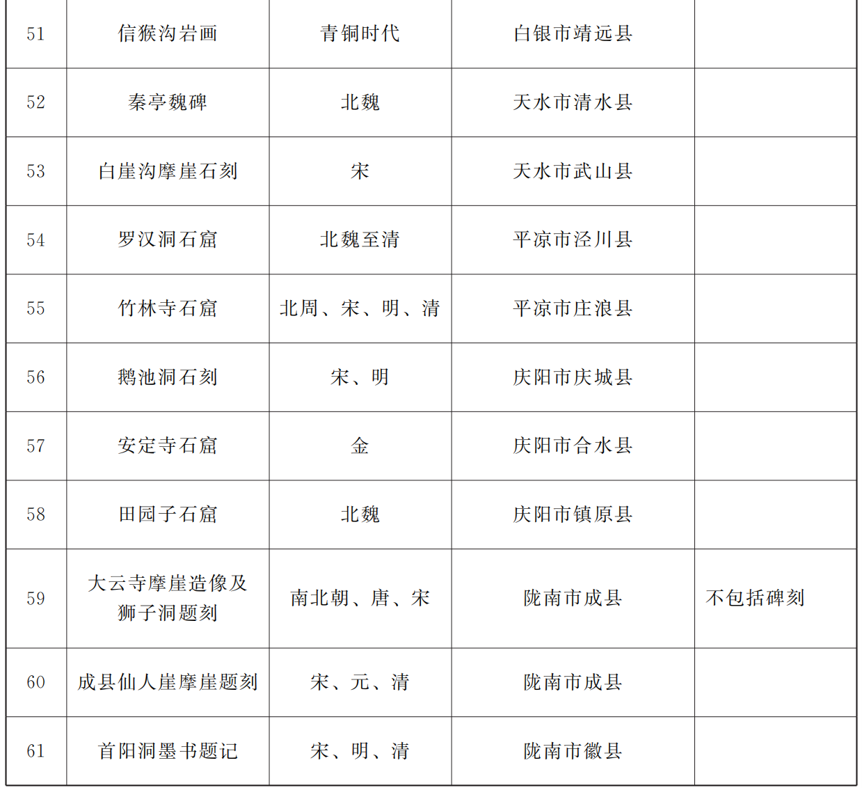 甘肃省人民政府关于公布第九批省级文物保护单位的通知
