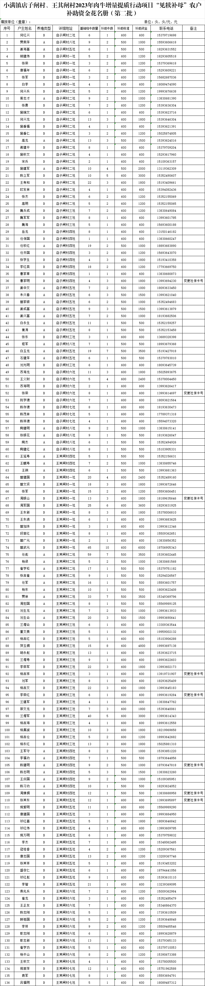 小满镇店子闸村、王其闸村2023年肉牛增量提质行动项目“见犊补母”农户 补助资金花名册(第二批)