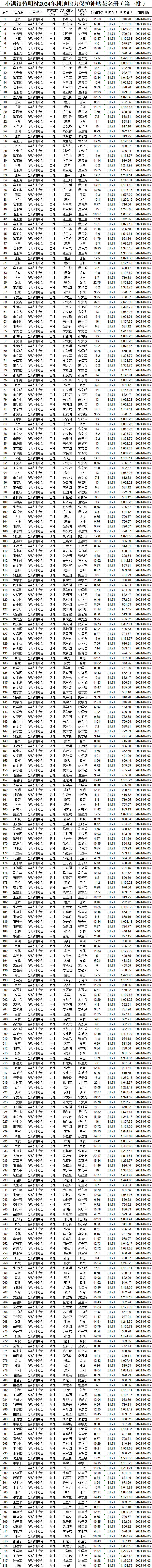 小满镇黎明村2024年耕地地力保护补贴花名册(第一批)
