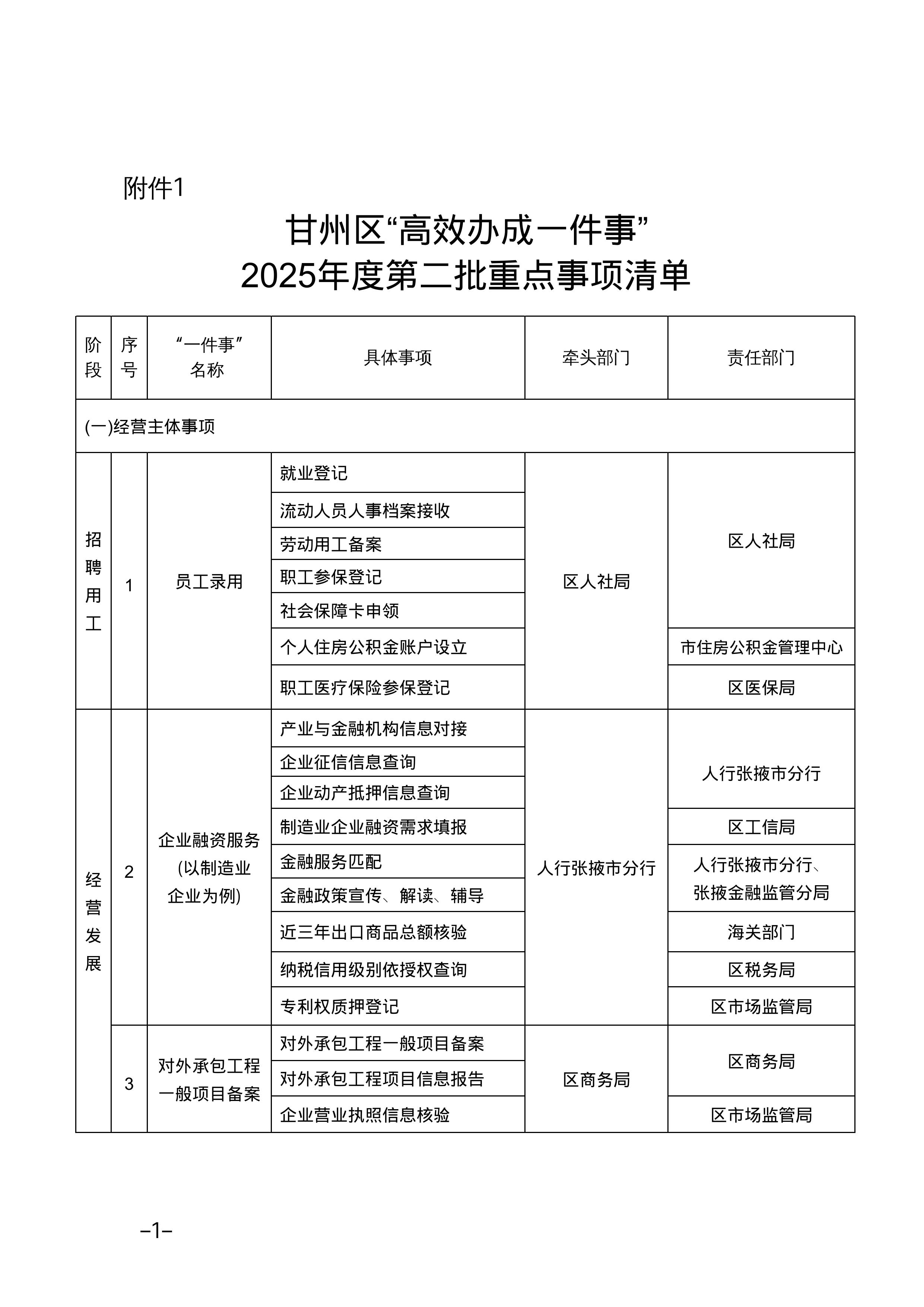 附件:1.甘州区“高效办成一件事”2025年度第二批重点事项清单