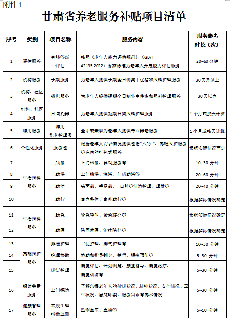 附件:1.甘肃省养老服务补贴项目清单