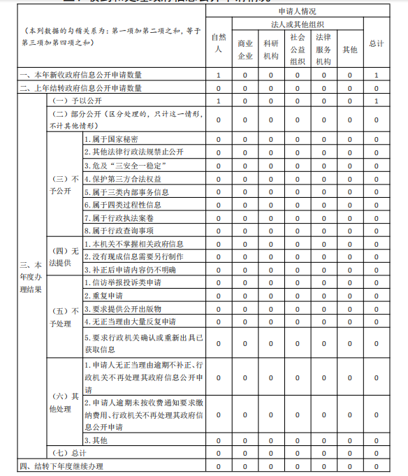 三、收到和处理政府信息公开申请情况