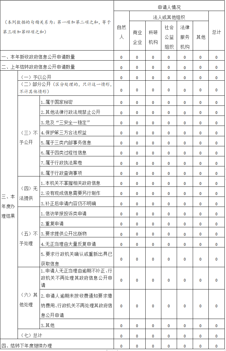 (二)依申请公开情况。全年未收到群众政府信息公开申请,政务公开诉求渠道运行平稳。