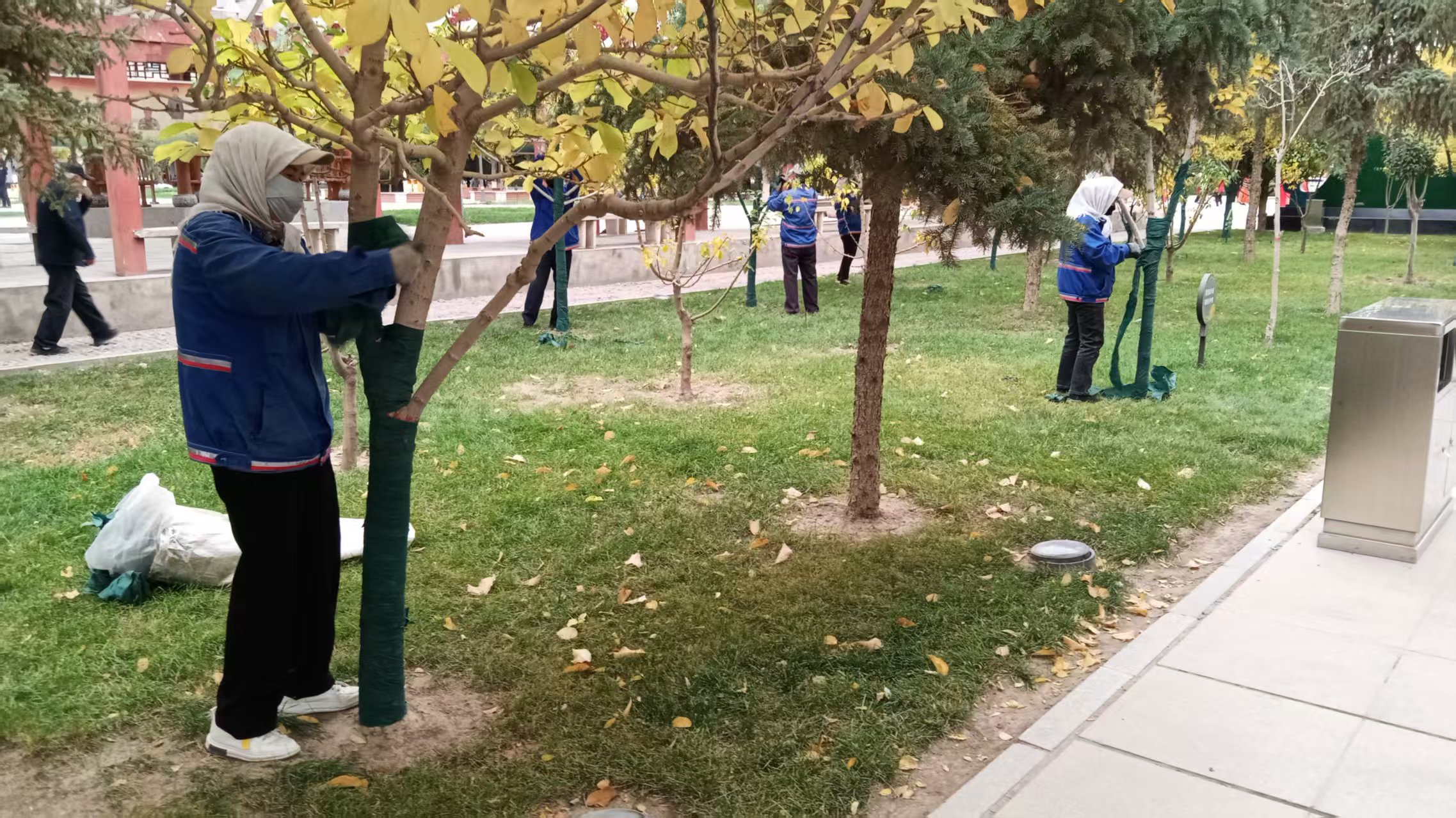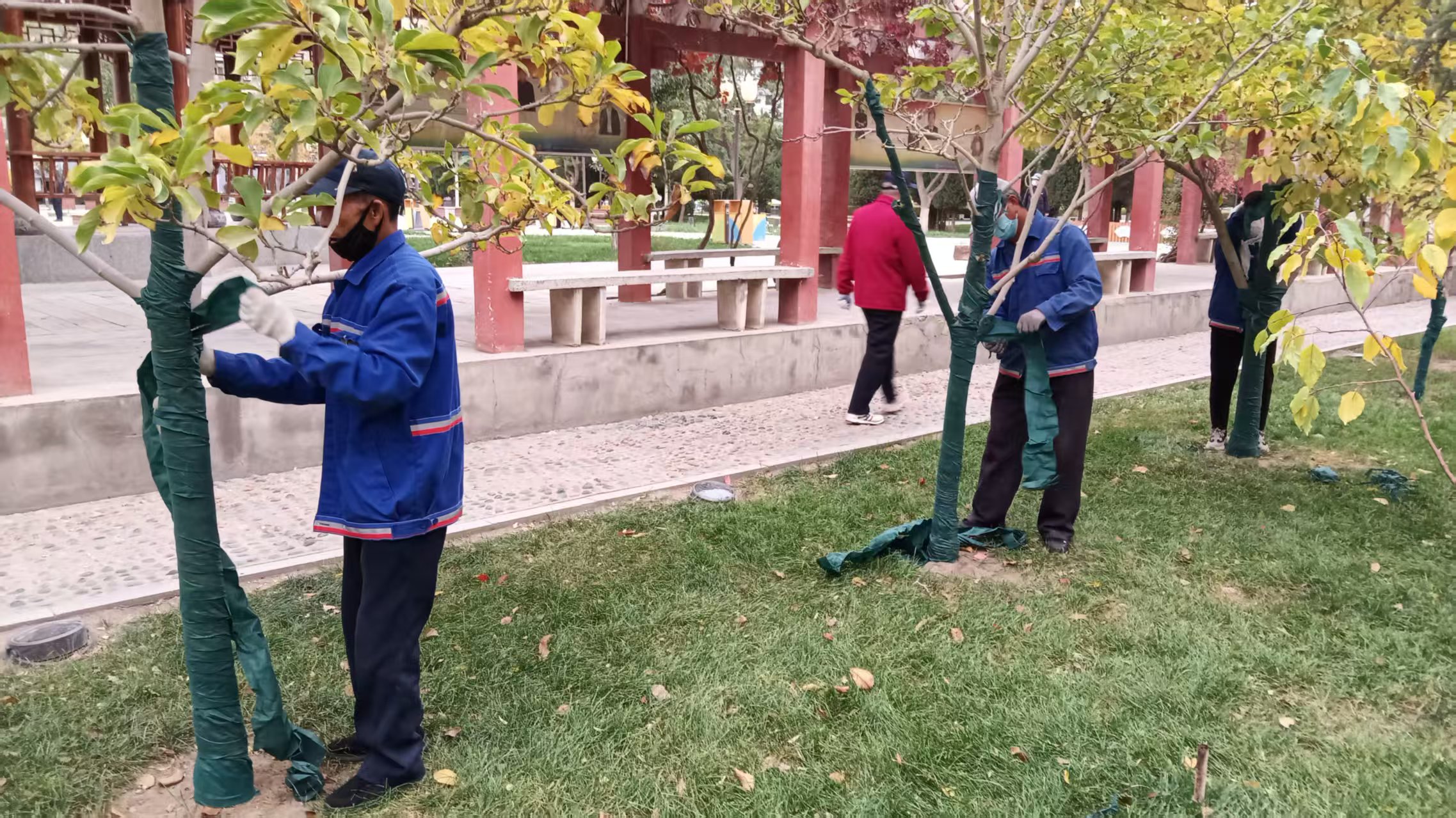 甘州区城市管理局:广场综合服务中心做好玉兰树冬季防寒保暖工作