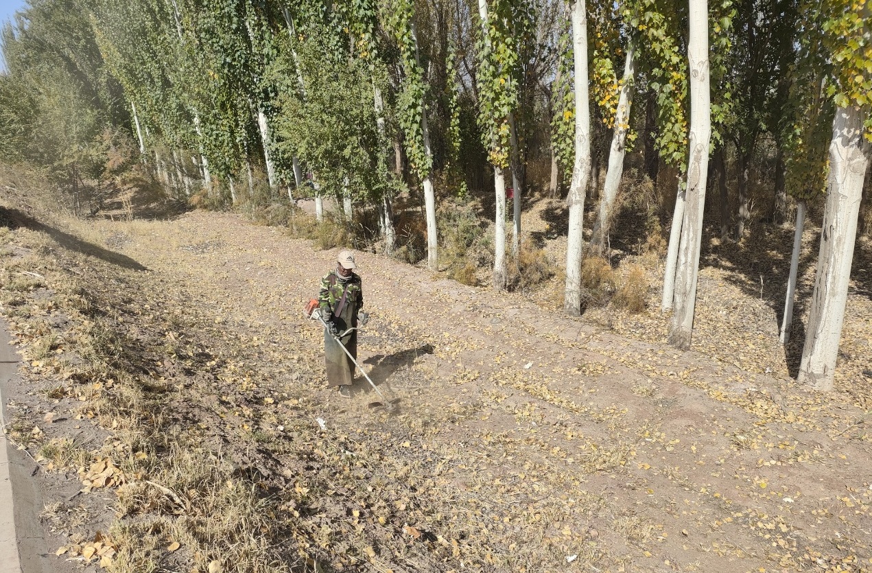 在冬季林木养护方面,该站重点推进四项工作。一是标准化涂白,对管护区内杨树、榆树、国槐、垂柳等1.3万株乔木统一涂白,严格控制高度,确保涂层均匀、不留缝隙、应涂尽涂。二是精准化防护,针对鼠兔啃食高发区域,布设防护网2.4公里,全面覆盖幼苗集中区及林缘地带。三是系统化防火,扎实开展森林草原火灾隐患排查,及时修剪张靖路沿线2100株新疆杨,并清理林下杂草与枯枝落叶53亩,有效减少林下易燃物载量。四是科学化灌溉,结合区域气候条件,通过核验土壤湿度确保浇足浇透,预计灌溉面积1850余亩。目前,养护物资已全部筹备到位,预计11月中旬前全面完工。