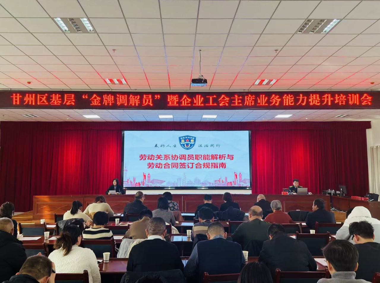 为深入贯彻落实党的二十届四中全会精神,12月12日,甘州区人力资源和社会保障局、甘州区总工会、甘州区社会治安综合治理中心联合举办基层“金牌调解员”暨企业工会主席业务能力提升培训会。经开区、各乡镇(街道)及区属重点企业的工会负责人、劳动人事争议调解员共150余人齐聚一堂,充电赋能、同台取经。