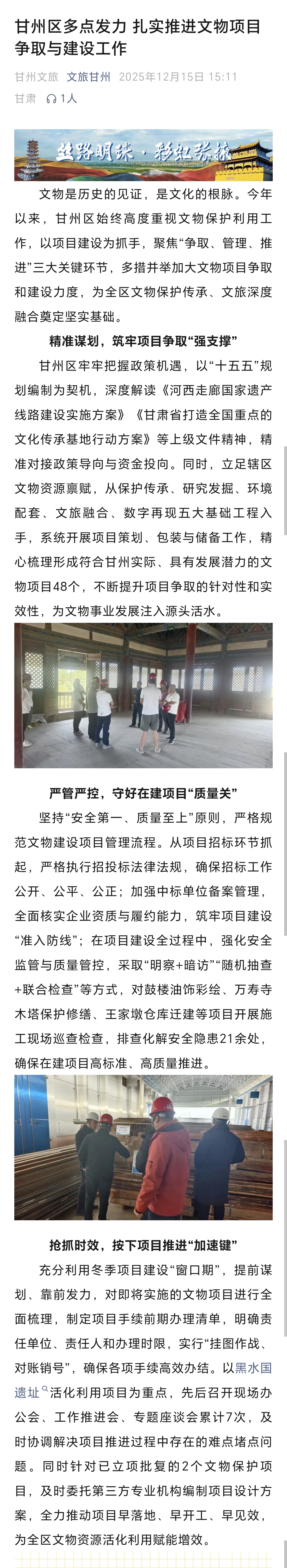 甘州区多点发力 扎实推进文物项目争取与建设工作