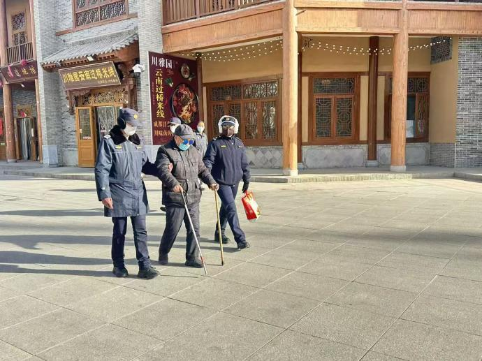 “您别担心,我们送您回去!”队员们一边轻声安抚老人,一边主动接过其手中的物品,一左一右搀扶着老人,沿着平缓的路线稳步前行,途中还不时提醒“前面有个小坡,您慢一点”“这里台阶不多,咱们小心抬脚”。短短十余分钟的路程,队员们全程悉心陪护,直到将老人安全送到小区门口,才放心返回工作岗位。