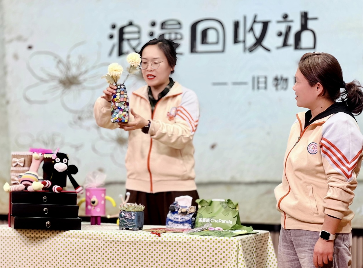 本次活动以“去表演化、重分享”为核心,旨在让每一位教职工成为主角,在日常的教育教学角色之外,解锁多元技能,绽放别样光彩。活动精心设置四大板块,教师自由选择类别,以个人或团队形式参与其中。在“巧手蕴匠心”板块,香气四溢的烘焙点心、创意十足的旧物改造作品、精致美观的手账一一亮相,教师们现场分享创作灵感与制作心得,尽显心灵手巧;“智慧生活家”板块,聚焦实用技能,干货分享精彩纷呈,手机摄影构图技巧、家庭空间收纳妙招、AI软件基础应用方法等内容,让大家在轻松氛围中收获满满;“创想艺术家”板块,妙趣横生的插花技艺、惟妙惟肖的配音秀、诙谐幽默的脱口秀轮番上演,现场掌声雷动、笑声不断;“闪亮的园丁”板块则回归教育初心,教师们自制的趣味创意教具、工整美观的POP字体作品、独具巧思的环创美工成果集中展示,点滴细节中体现教师的巧思与匠心。活动中,教师们围坐畅谈,交流活动中的收获与感悟,一句句真挚的话语汇聚成温暖的力量。
