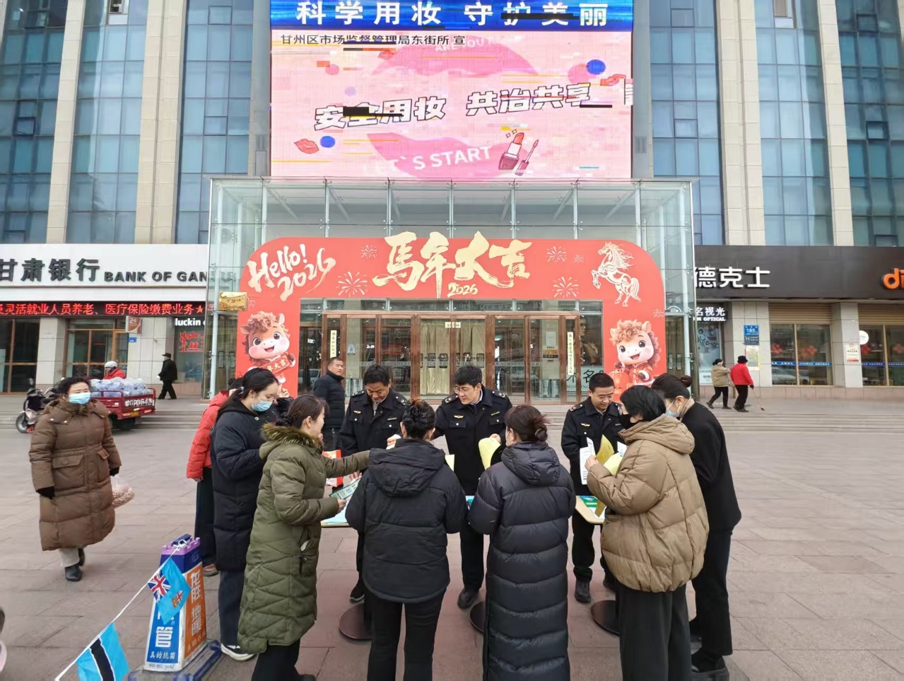 为深入践行“化妆品安全 监管为民”理念,切实提升辖区群众化妆品安全认知水平,增强消费者自我保护意识与辨别能力,甘州区东街市场监管所围绕“科学用妆、安全用妆”主题,扎实开展化妆品安全宣传周活动,通过多样化、接地气的举措普及用妆知识,推动形成全社会共同关注、参与化妆品安全治理的良好氛围。