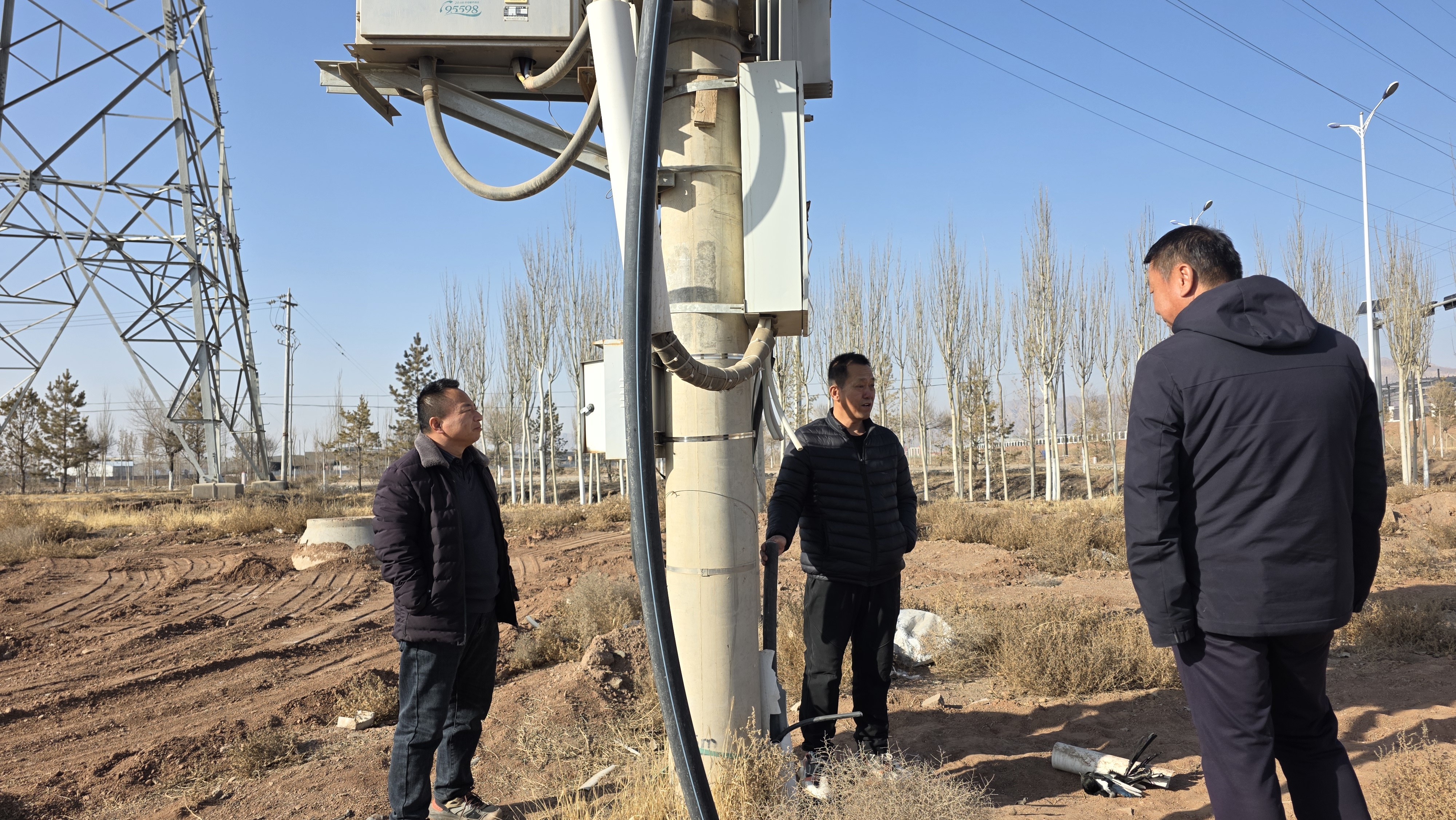 专项检查由站领导带队,抽调各护林组业务骨干组成检查组,深入林区一线,围绕森林草原防灭火、电力设施安全、林木安全越冬等重点内容展开全面排查。检查组细致检查了林区输配电线路、设备接地、配电箱防护等情况,严防因线路老化、电气故障等引发安全事故;同时对灌溉设施进行系统检测,确保设备完好、运行正常,为后续林区生产管护工作提供可靠保障。