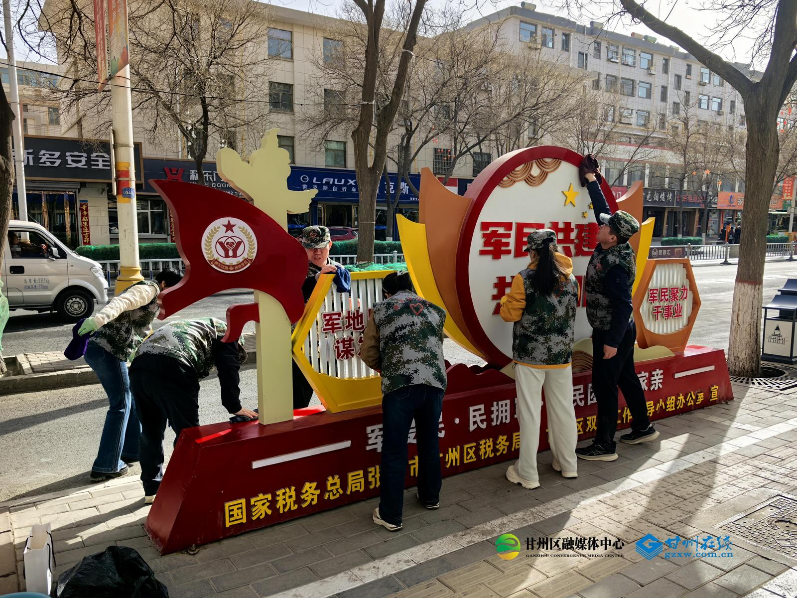为持续厚植双拥文化底蕴,擦亮全国双拥模范城金字招牌,3月20日下午,甘州区退役军人事务局以“传承军人本色共筑双拥新风”为主题,组织开展双拥政策法规集中宣传与双拥景观小品、双拥标识清洁维护专项行动,以实际行动弘扬拥政爱民、拥军优属光荣传统,营造军民同心、共建共享的浓厚氛围。