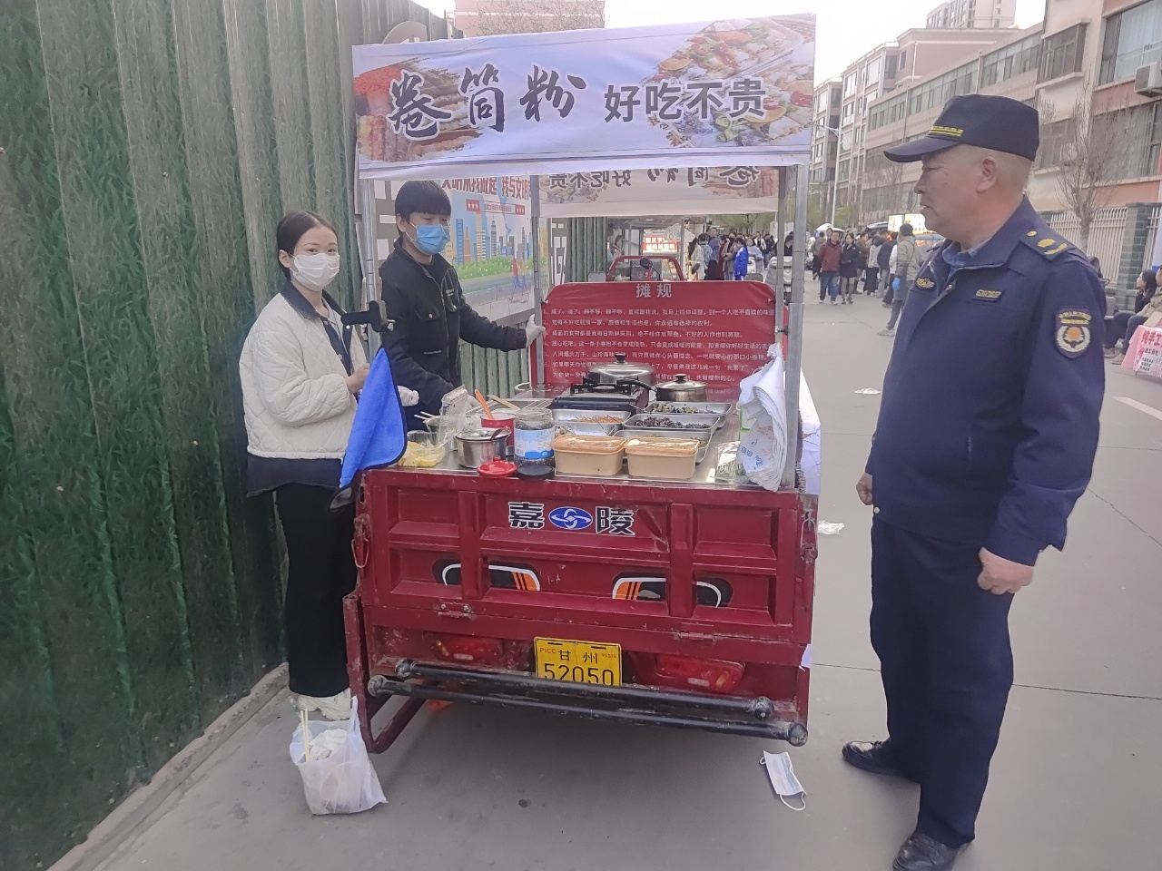 为规范市容秩序,消除道路通行隐患,甘州区城市管理局南街执法中队联合街道、市场监督管理局,对西花苑周边的马路市场开展了专项整治。