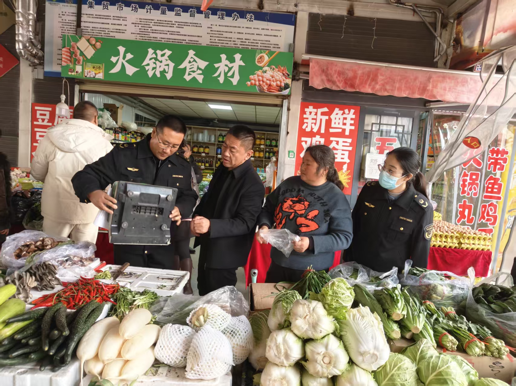 检查遵循“全覆盖、查重点、除隐患”原则,排查各类经营主体:一是核查计量与资质,确保公平秤合规使用,督促经营者规范公示资质;二是整治重点业态,检查鲜肉店14家,小餐饮店及小作坊、摊点19家,严查不合格商品、违规经营行为,保障节日消费安全。检查期间,执法人员同步开展普法宣传,宣讲相关法律法规,强化经营户主体责任与诚信意识,引导其规范经营。