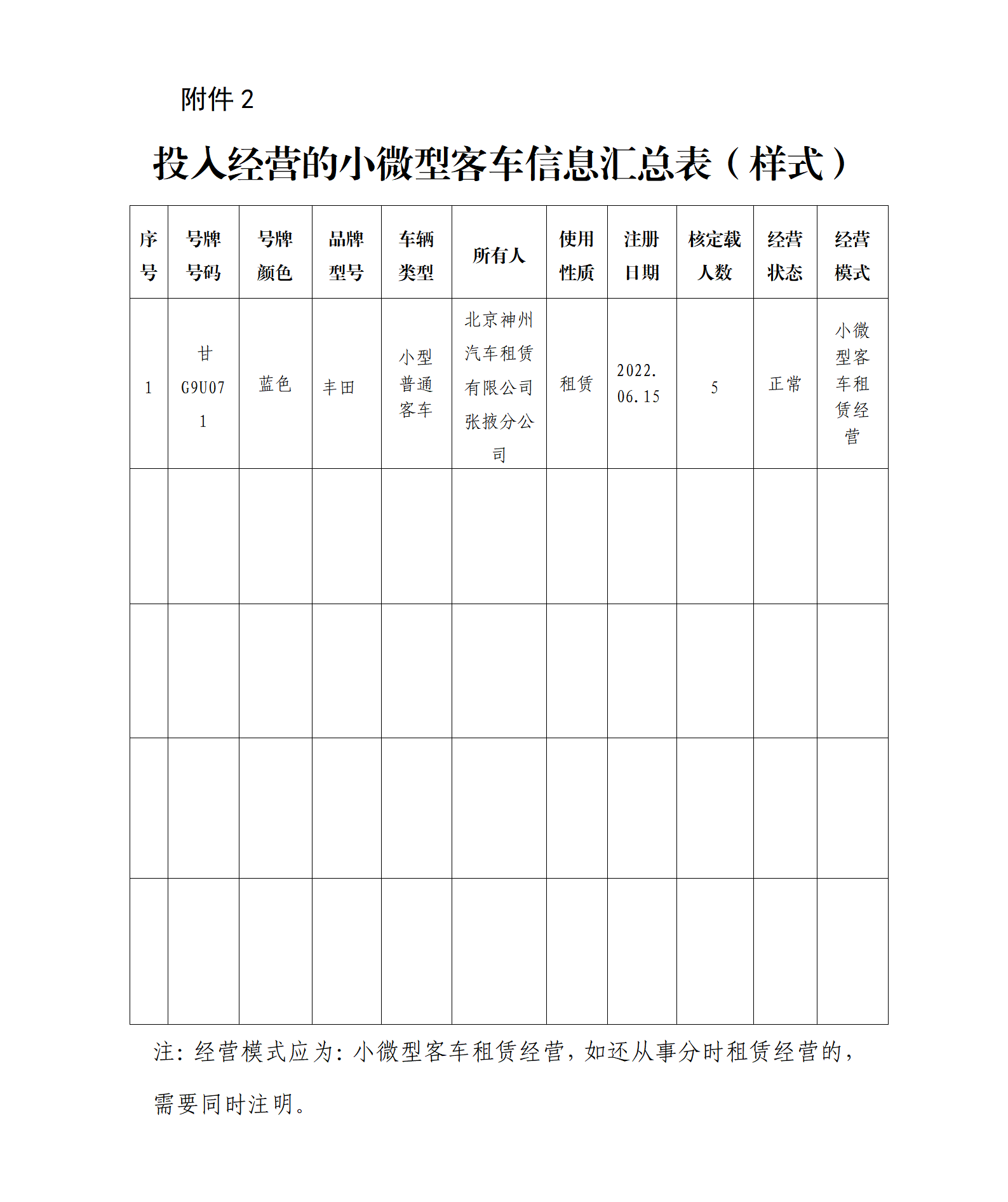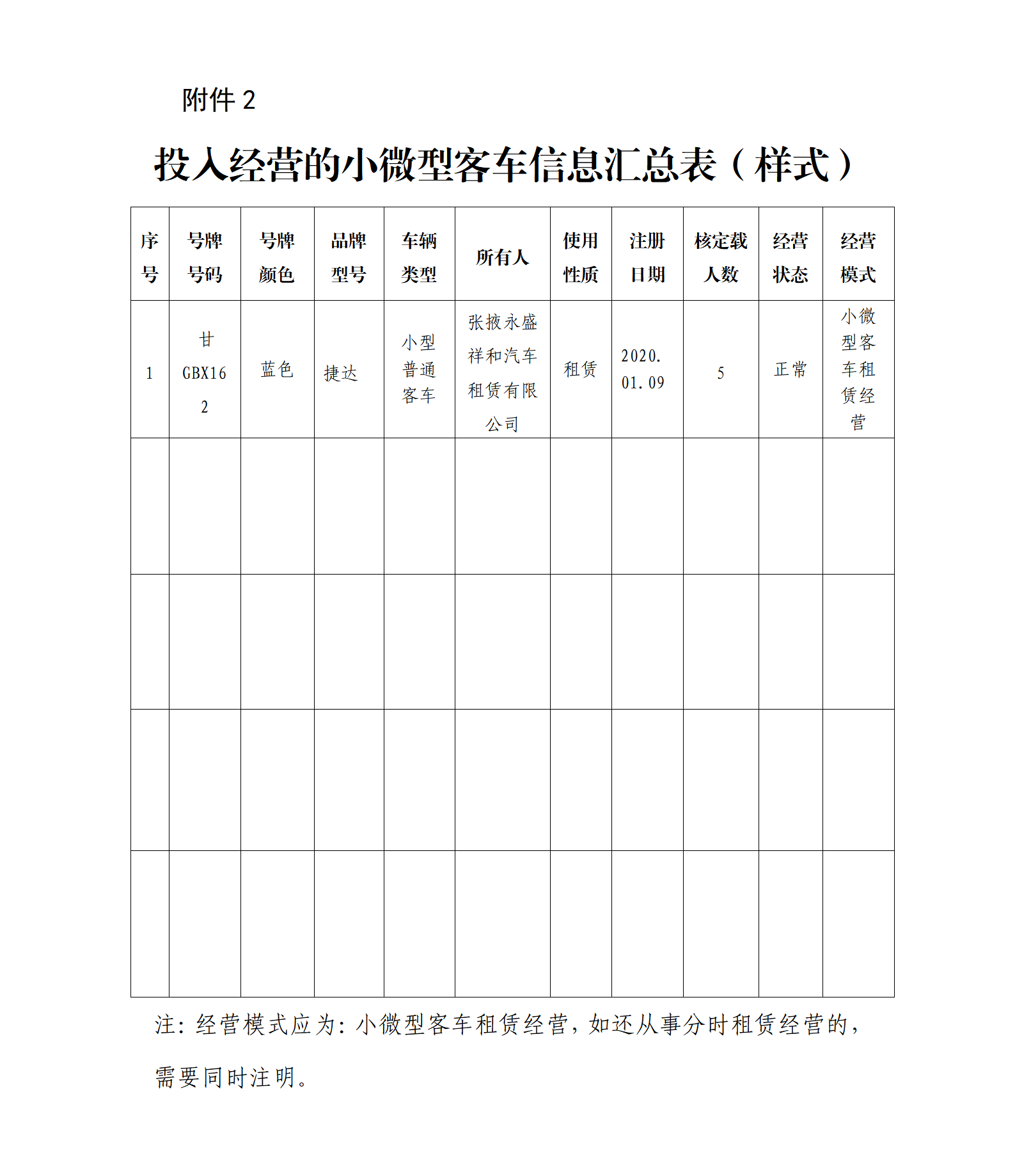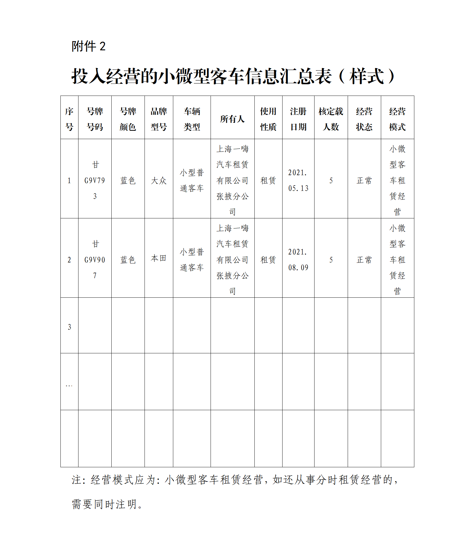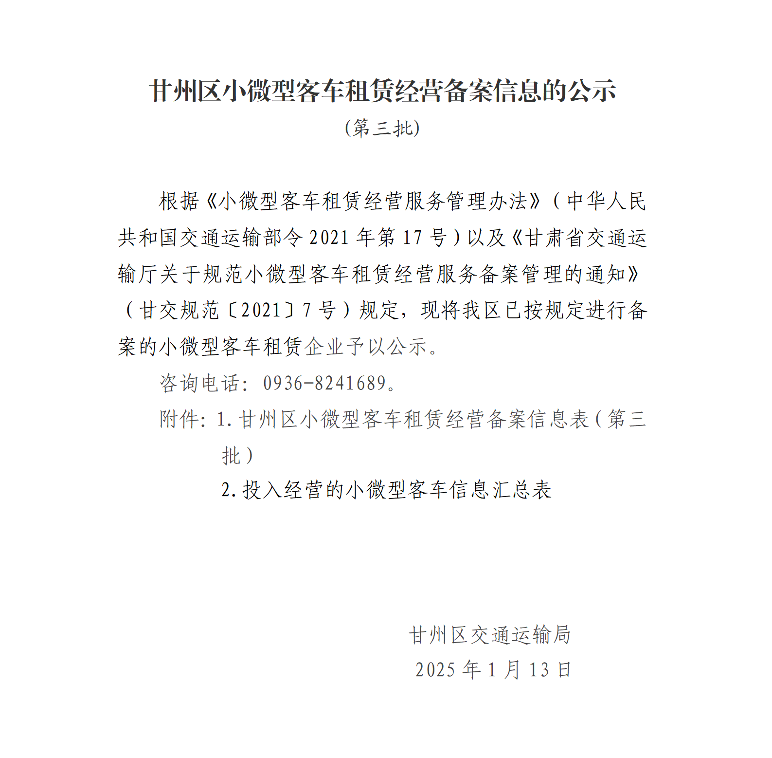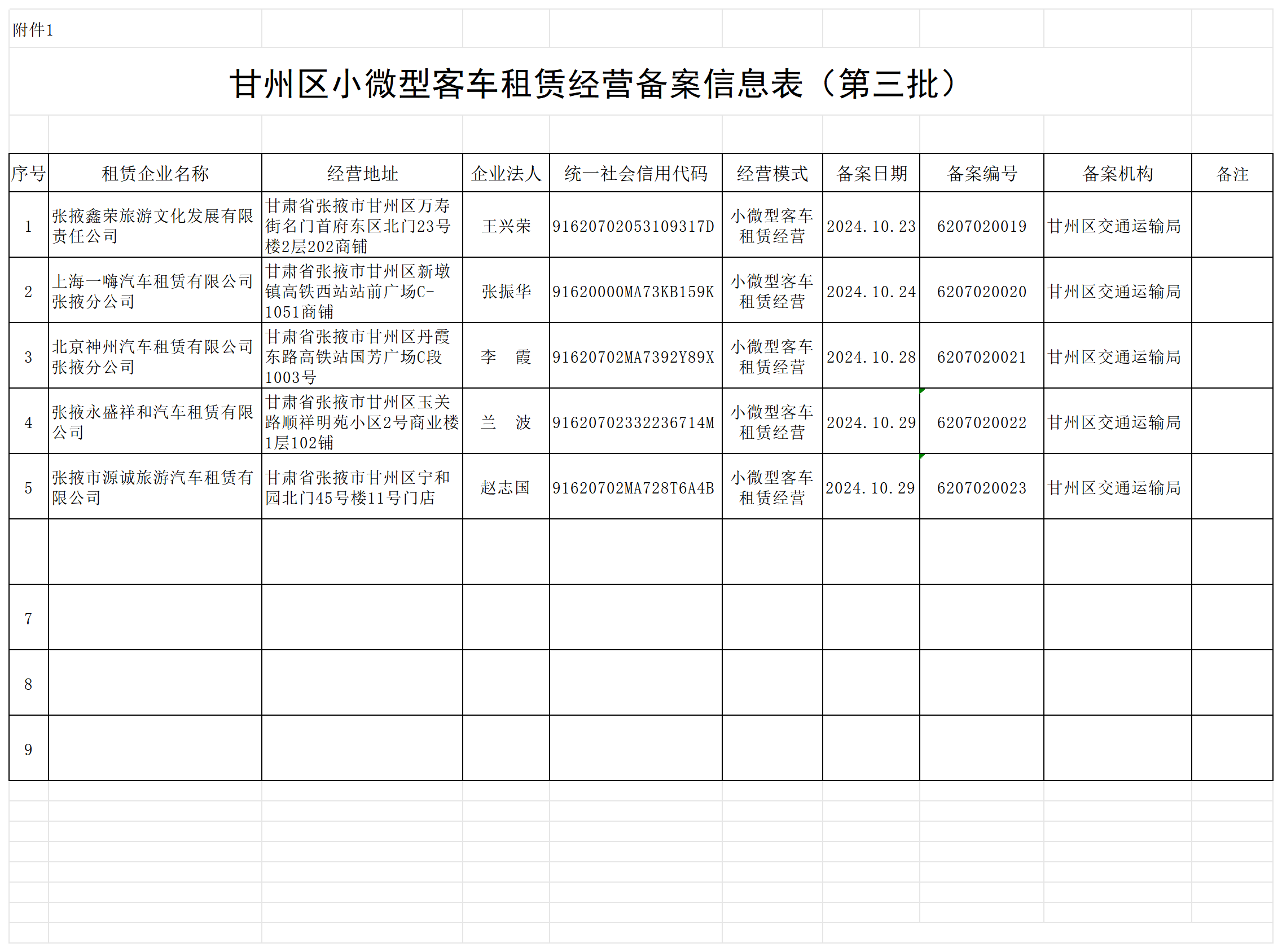 甘州区小微型客车租赁经营备案信息的公示(第三批)