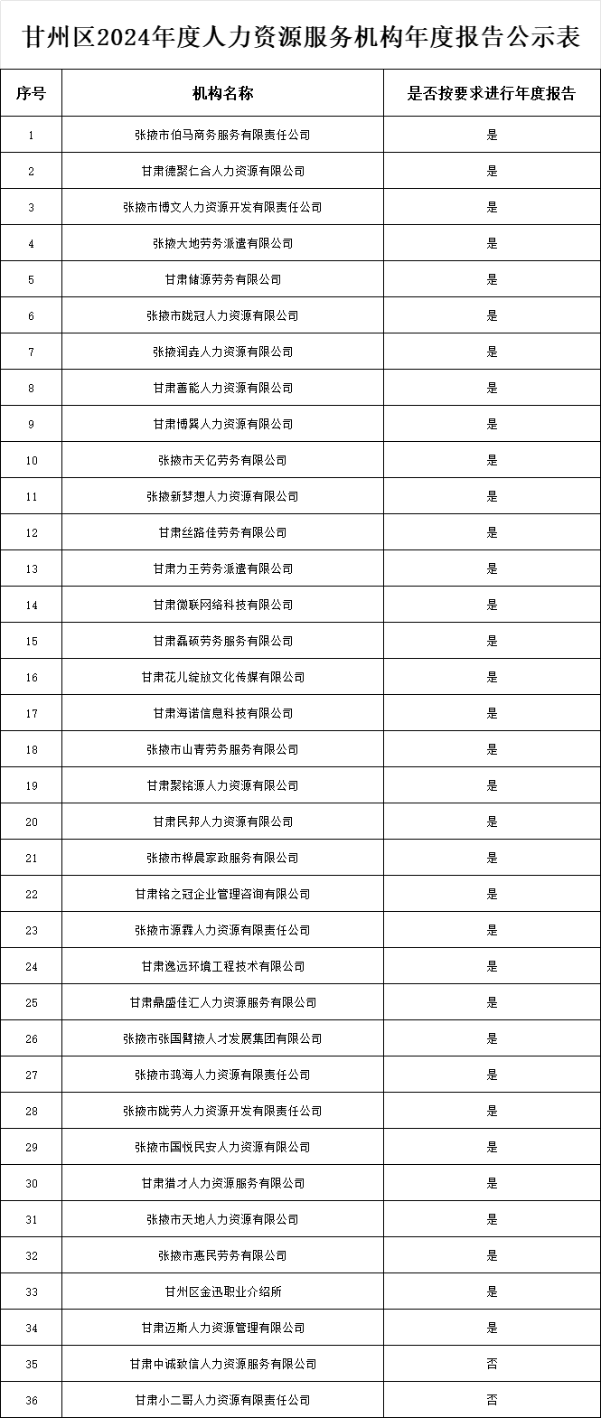 甘州区人力资源和社会保障局关于2024年度人力资源服务机构年度报告情况的公示