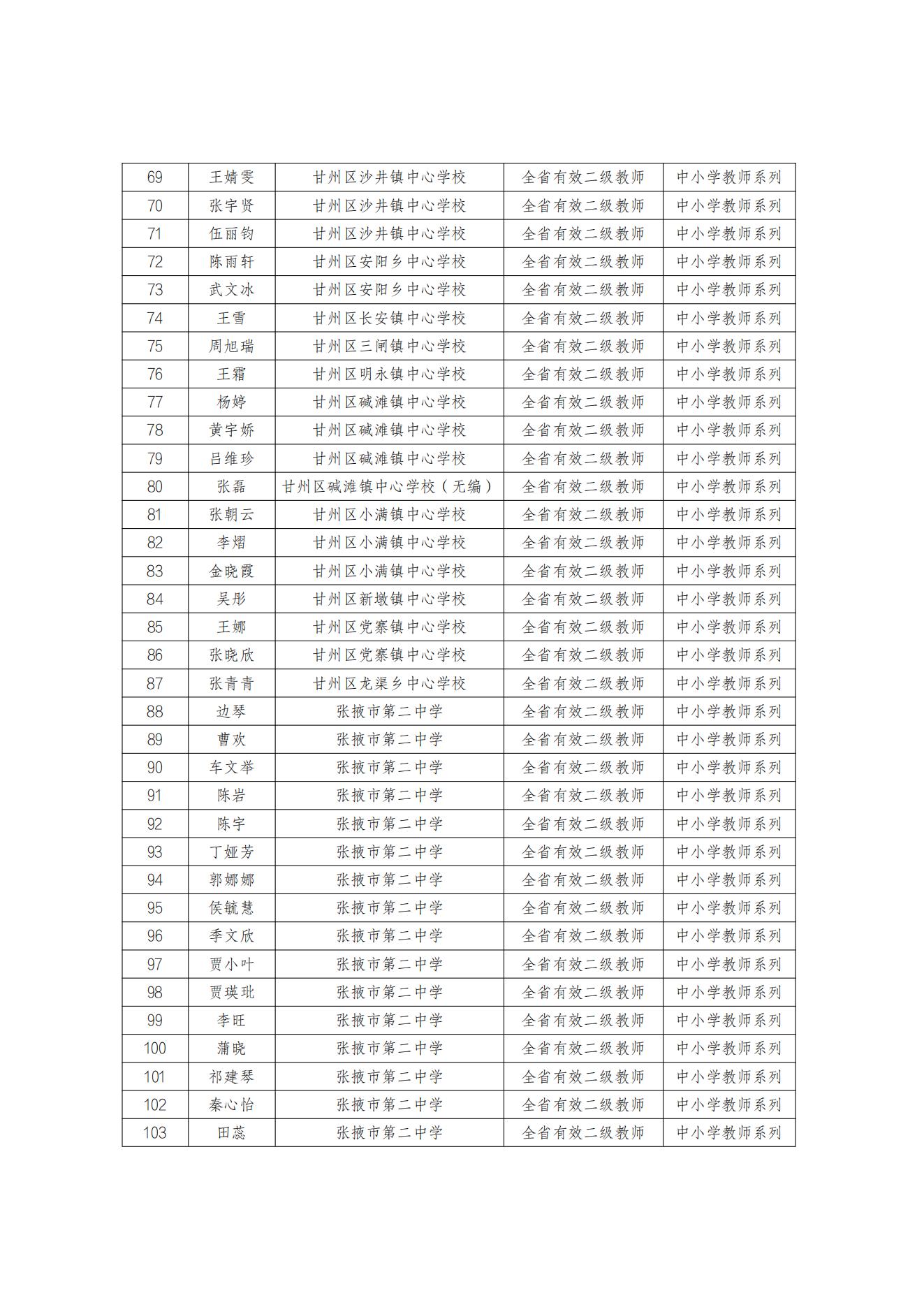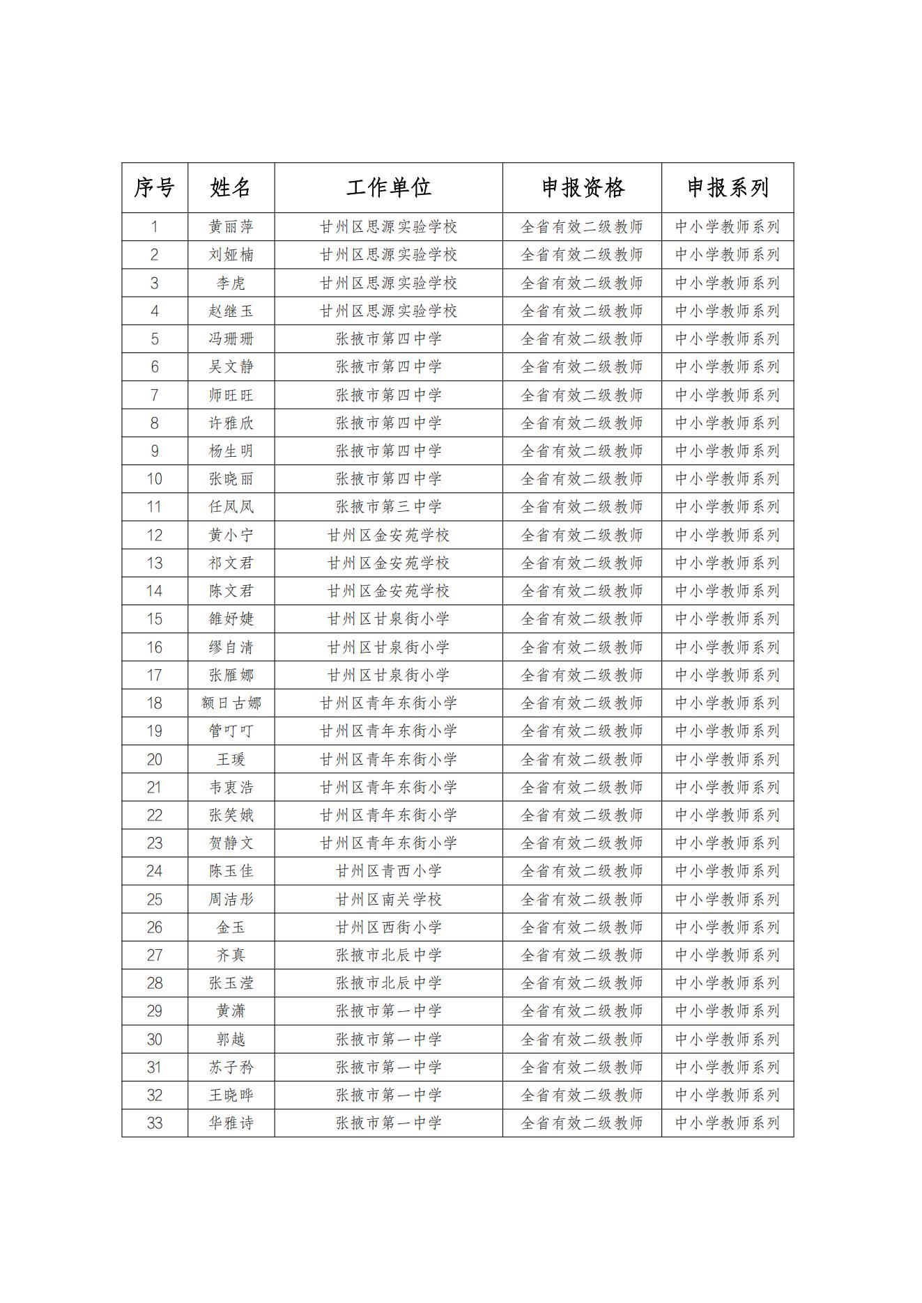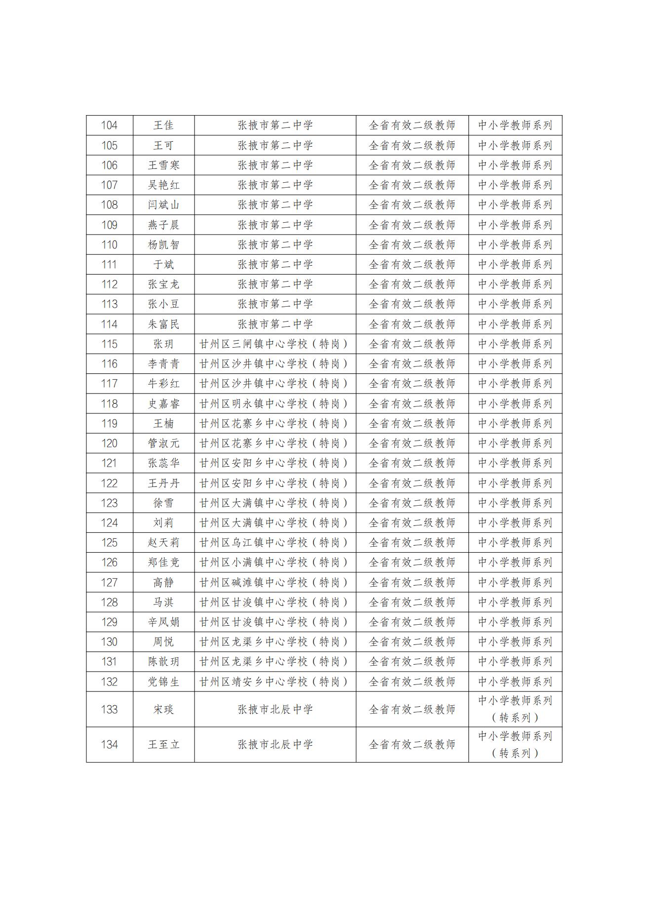 根据市人社局《关于规范全市专业技术人员初级职称考核认定有关工作的通知》(张人社职〔2018〕87号)文件精神,经本人申请,单位考核、公示,区教育局审查,拟确定黄丽萍等132名同志中小学教师系列全省有效初级职称资格,拟转定宋琰、王至立2名同志中小学教师系列全省有效初级职称资格。现将基本情况予以公示,接受社会监督。
