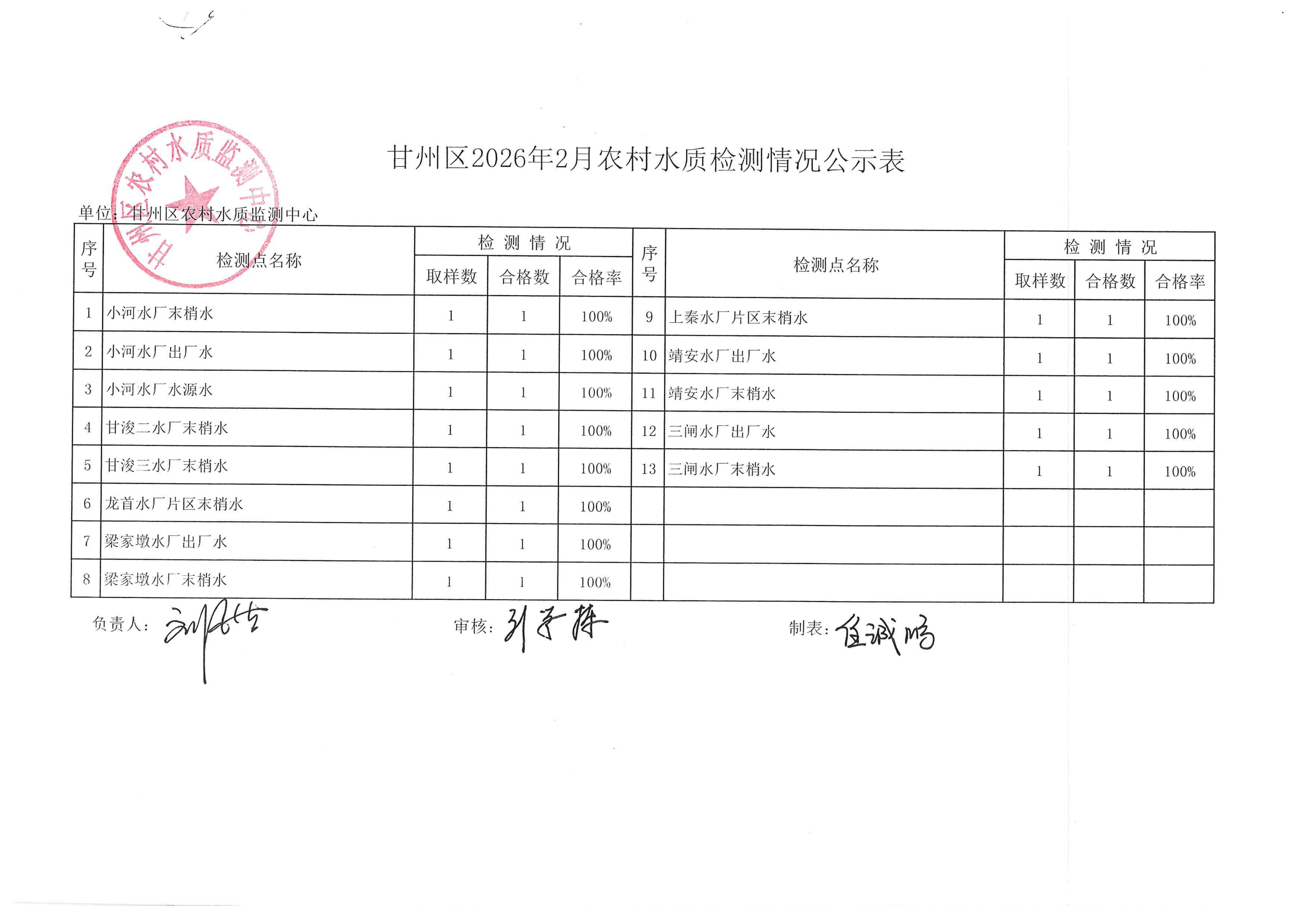 检测甘州区小河水厂等8处农村集中供水厂水源水、出厂水、末梢水,共计13个检测点。