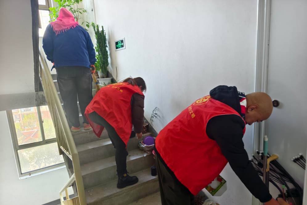 零碳清洁提质效,绿色操作护家园。社区推行“分区包干、错峰作业”模式,党员志愿者带头组成“零碳清洁小队”,针对小区绿化带落叶、楼道堆积物、公共区域死角等重点区域开展集中清理,同时引导居民将落叶、枯枝等可堆肥垃圾单独堆放,方便物业后续将其用于小区绿地堆肥,实现“废弃物资源化利用”。