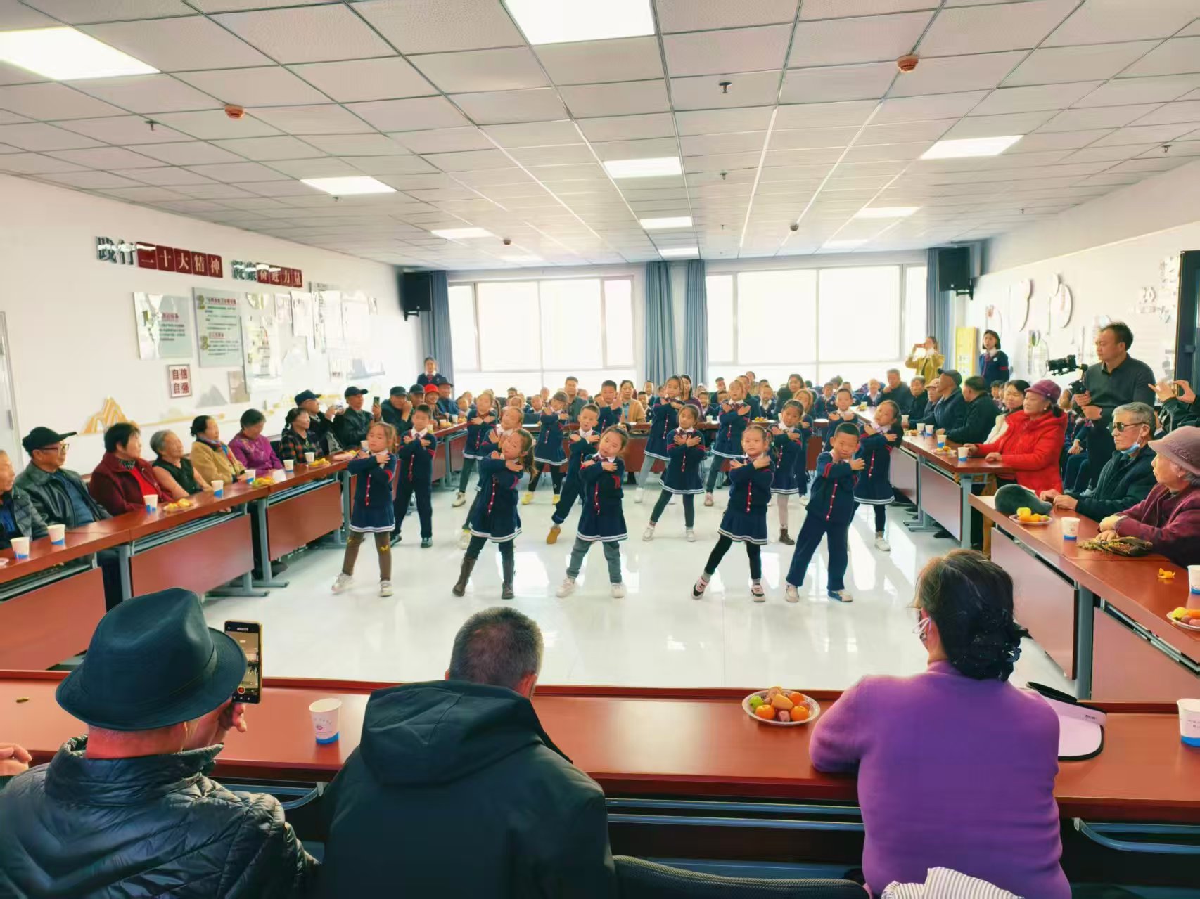 在热烈的掌声中,活动进入精彩的表演环节。幼儿园的孩子们身着整齐服装,精神饱满地带来舞蹈《中华孝道》与《九九重阳》。孩子们动作稚嫩却充满活力,每一个舞姿都传递着对长辈的祝福,可爱的模样赢得了在场老人的阵阵掌声与欢声笑语。随后,幼儿园教师们深情朗诵诗歌《九九重阳 今又重阳》,真挚的情感、优美的文字,将对老年人的尊敬与美好祝愿娓娓道来,让现场氛围愈发温馨动人。